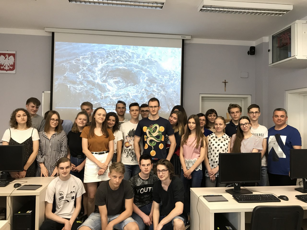 admin 8 lat temu Organizacyjne , Uroczystości25 maja 2018 roku w Centrum Grafiki Komputerowej uczniowie klasy IIA uczestniczyli w spotkaniu z absolwentem naszej szkoły Markiem Glinką, pracownikiem firmy NoLabel – studia animacji i postprodukcji filmowej z Krakowa.