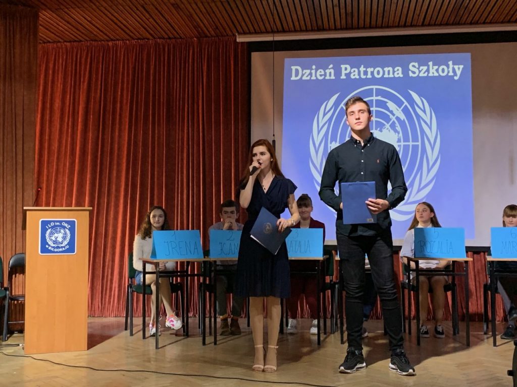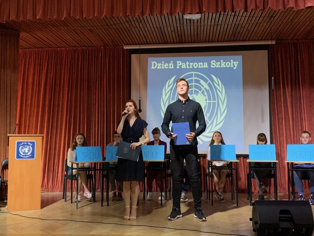 24 października 2019 r. nasze liceum obchodziło Dzień Patrona Szkoły. Nadanie szkole imienia Organizacji Narodów Zjednoczonych miało miejsce 8 maja 1986 r. Aby przypomnieć to wydarzenie, uczniowie liceum przygotowali część artystyczną. Celem akademii było zapoznanie uczniów klas pierwszych i drugich z Organizacją Narodów Zjednoczonych, jej historią, celami, zasadami członkostwa, organami, organizacjami wyspecjalizowanymi  oraz misjami pokojowymi. Uczniowie wymienili zadania UNESCO, a także podkreślili fakt, iż nasza szkoła jest jedyną Szkołą Stowarzyszoną UNESCO w Biłgoraju.