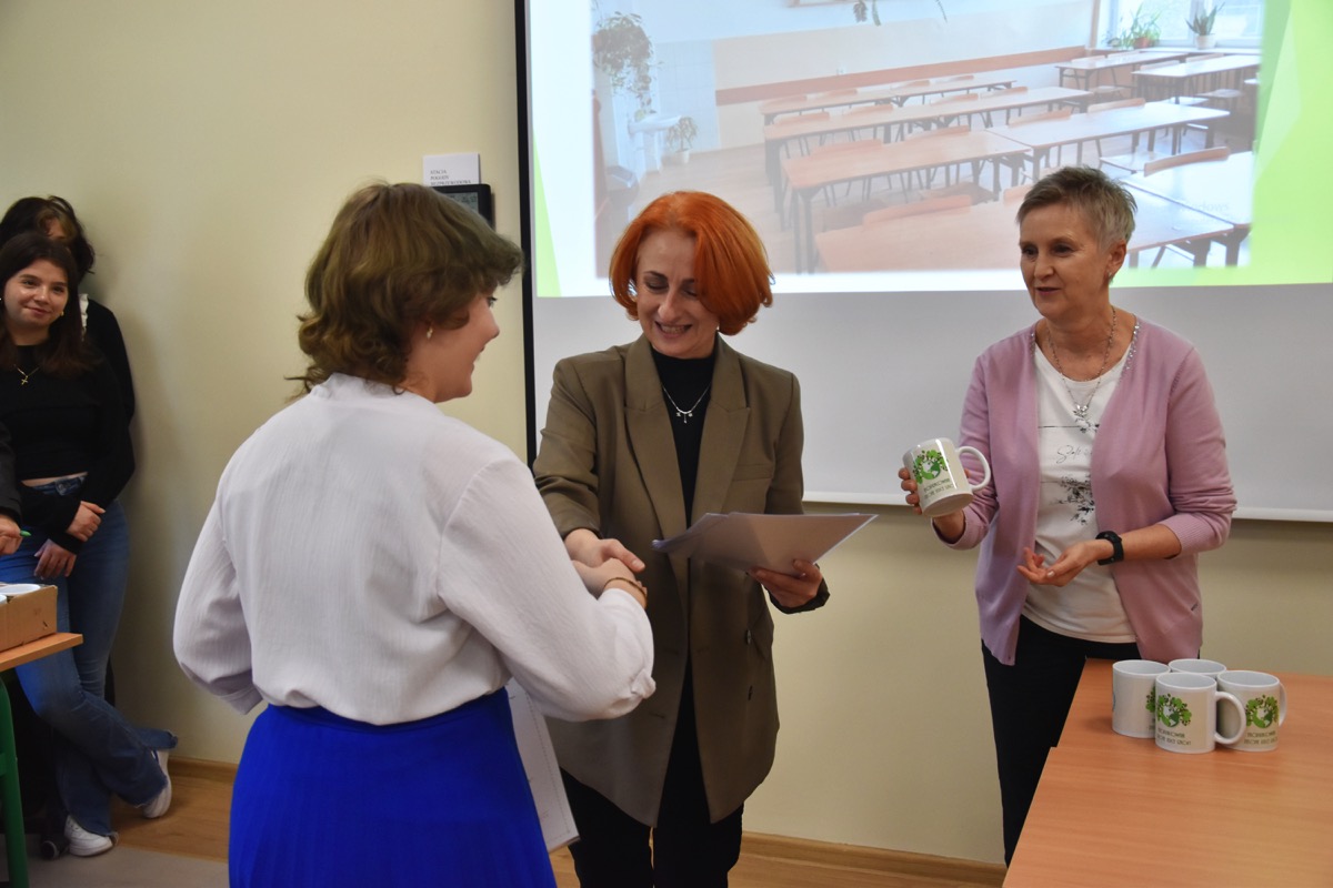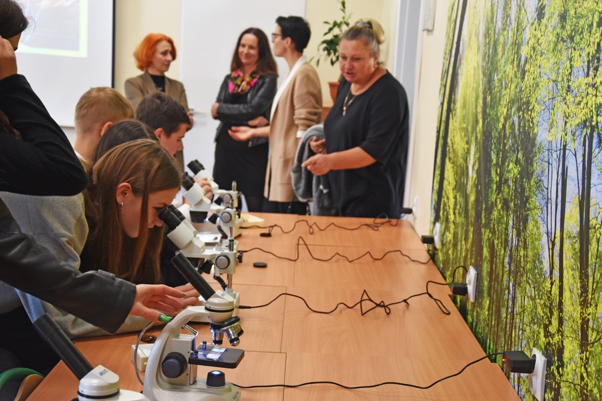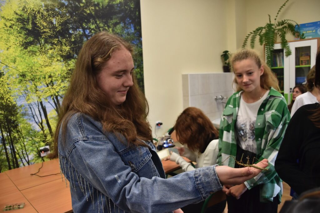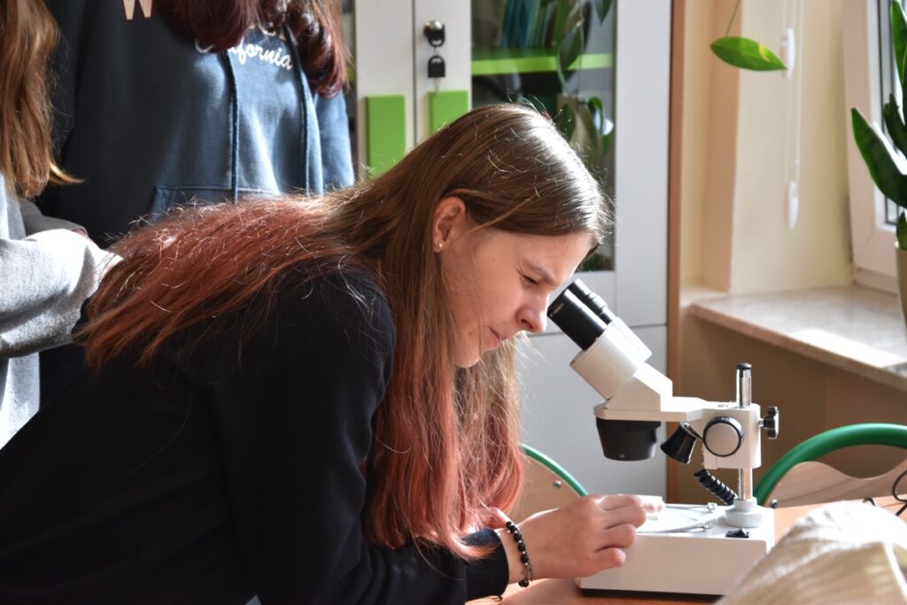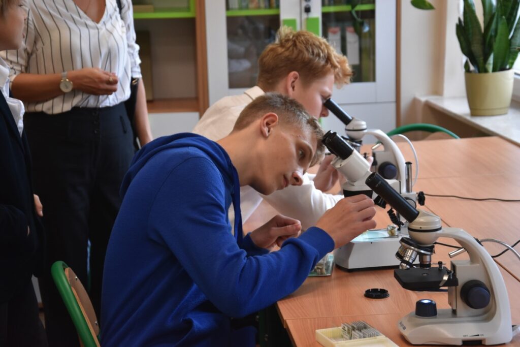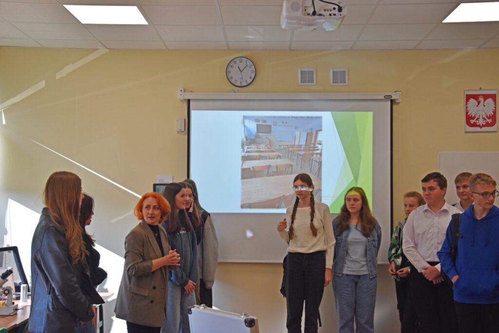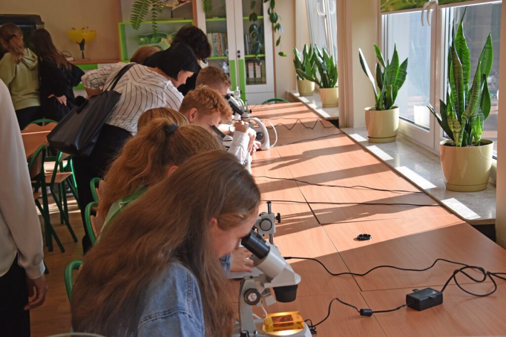 admin 2 lata temu Konkursy , Organizacyjne , Osiągnięcia26 października 2023 roku w naszym liceum odbył się Konkurs Ekologiczny dla uczniów klas siódmych i ósmych szkół podstawowych powiatu biłgorajskiego. Zwycięzcą konkursu został Jakub Szymanik ze Szkoły Podstawowej w Tarnogrodzie, kolejne równoległe miejsce zajęły Milena Jaskowska ze Szkoły Podstawowej w Dereźni Solskiej i Amelia Mulawa ze Szkoły Podstawowej w Luchowie Dolnym. Po napisaniu testu ekologicznego uczniowie wraz z opiekunami przeszli do nowo powstałej ekopracowni, na którą szkoła otrzymała dofinansowanie z projektu ,,Ekopracownia – zielone serce szkoły” realizowanego przez Wojewódzki Fundusz Ochrony Środowiska w Lublinie. W nowoczesnej pracowni młodzież zapoznała się z warunkami nauczania biologii w naszym liceum. Uczestnicy konkursu obejrzeli pomoce naukowe wykorzystywane podczas lekcji, samodzielnie prowadzili obserwacje mikroskopowe oraznauczyli się obsługi binokularu. Duże zainteresowanie młodzieży wzbudziło akwarium i hodowla patyczaków.