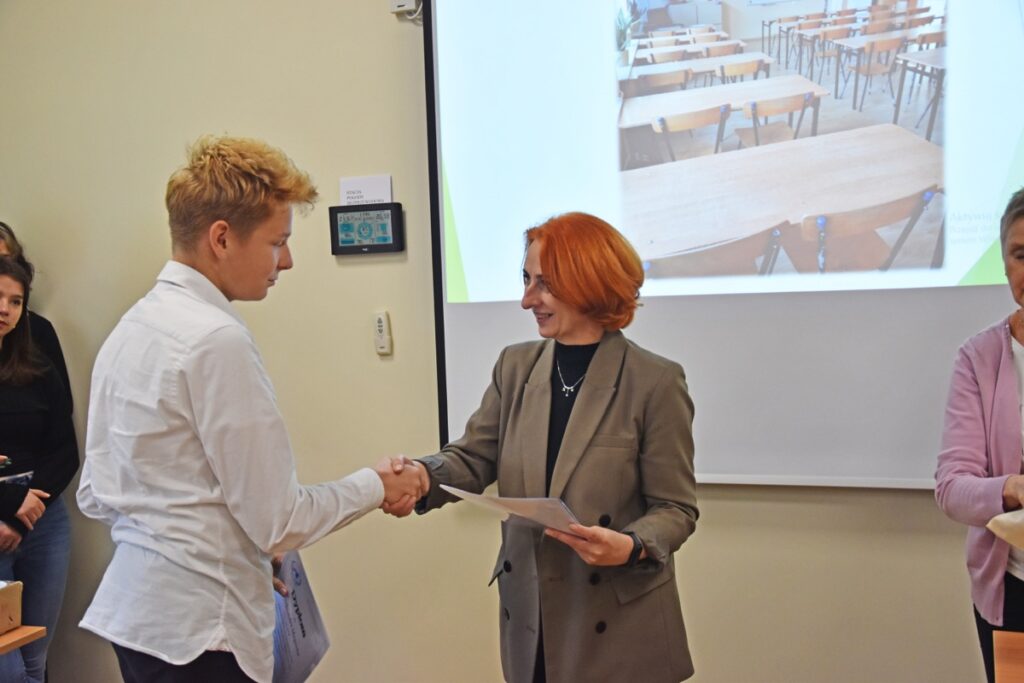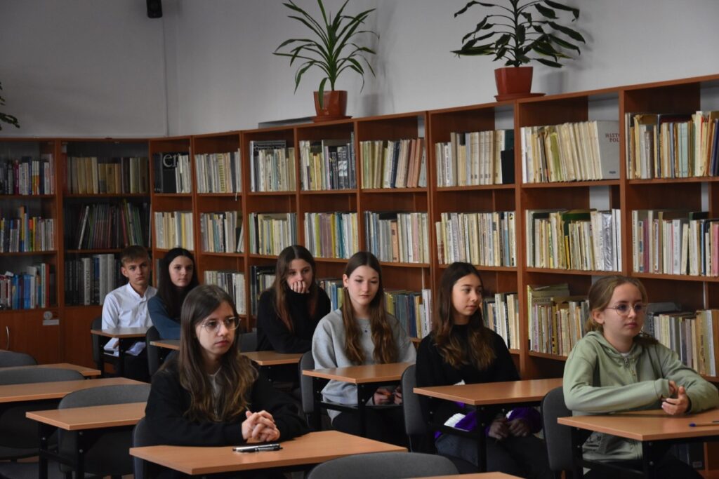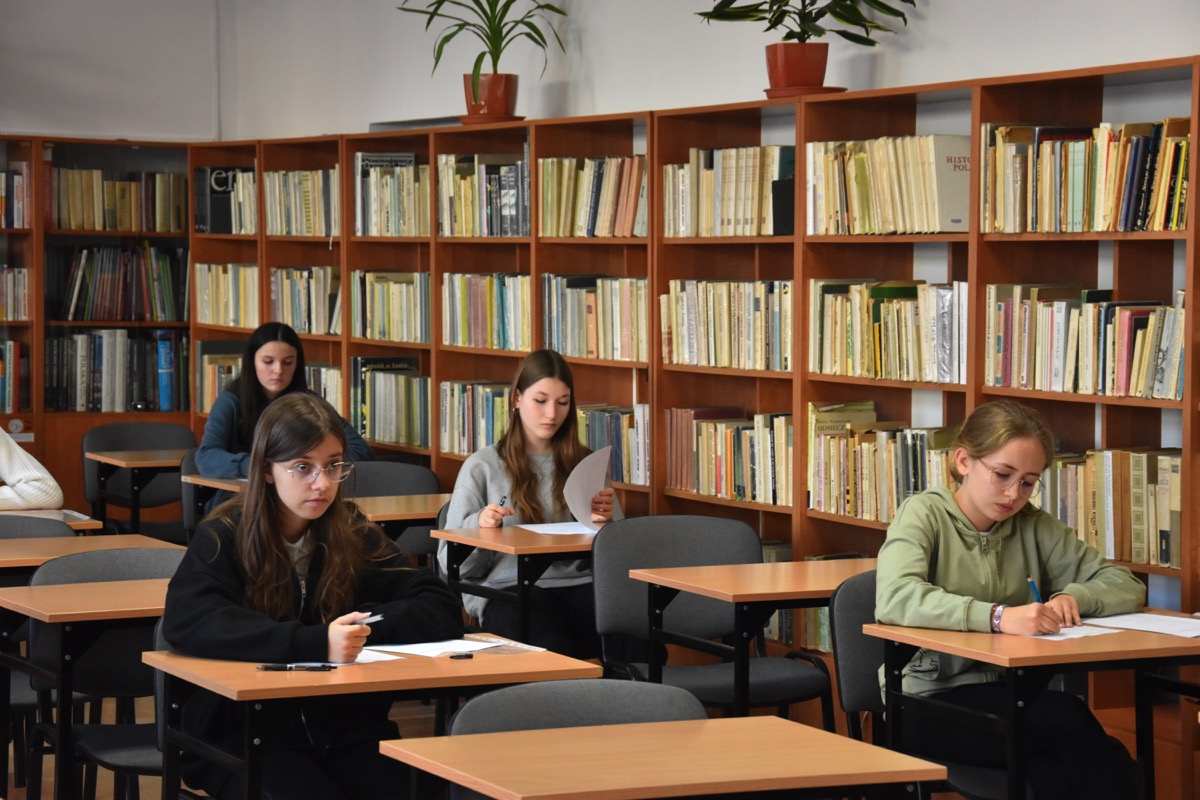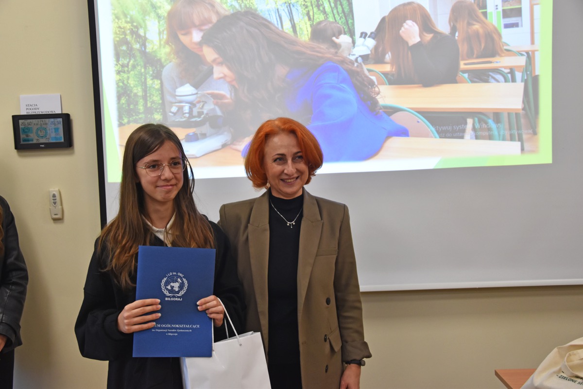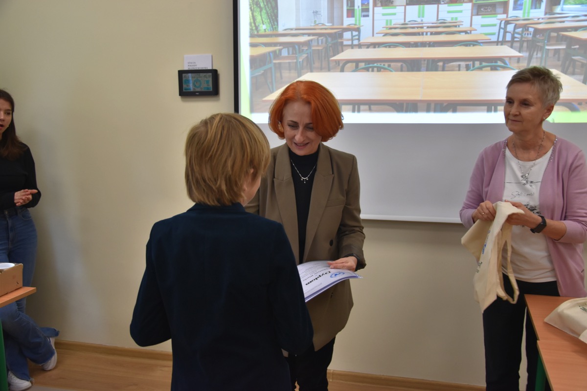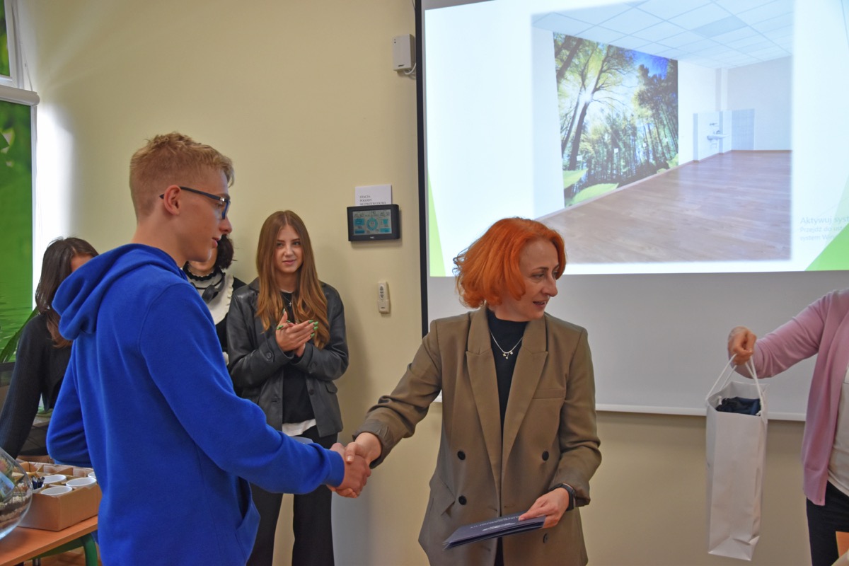 admin 2 lata temu Konkursy , Organizacyjne , Osiągnięcia26 października 2023 roku w naszym liceum odbył się Konkurs Ekologiczny dla uczniów klas siódmych i ósmych szkół podstawowych powiatu biłgorajskiego. Zwycięzcą konkursu został Jakub Szymanik ze Szkoły Podstawowej w Tarnogrodzie, kolejne równoległe miejsce zajęły Milena Jaskowska ze Szkoły Podstawowej w Dereźni Solskiej i Amelia Mulawa ze Szkoły Podstawowej w Luchowie Dolnym. Po napisaniu testu ekologicznego uczniowie wraz z opiekunami przeszli do nowo powstałej ekopracowni, na którą szkoła otrzymała dofinansowanie z projektu ,,Ekopracownia – zielone serce szkoły” realizowanego przez Wojewódzki Fundusz Ochrony Środowiska w Lublinie. W nowoczesnej pracowni młodzież zapoznała się z warunkami nauczania biologii w naszym liceum. Uczestnicy konkursu obejrzeli pomoce naukowe wykorzystywane podczas lekcji, samodzielnie prowadzili obserwacje mikroskopowe oraznauczyli się obsługi binokularu. Duże zainteresowanie młodzieży wzbudziło akwarium i hodowla patyczaków.