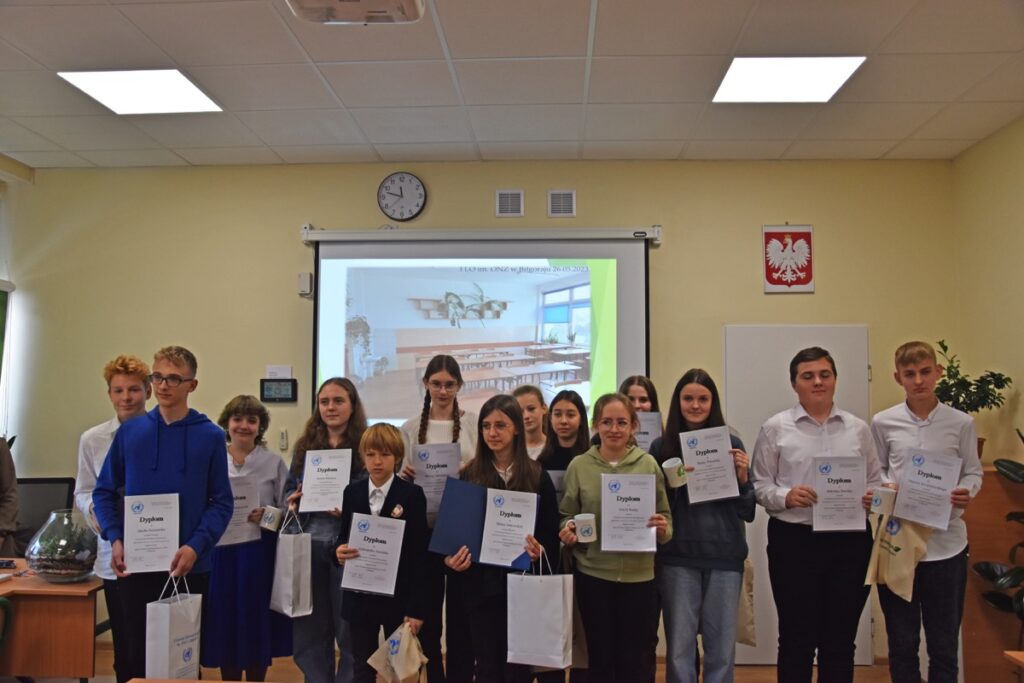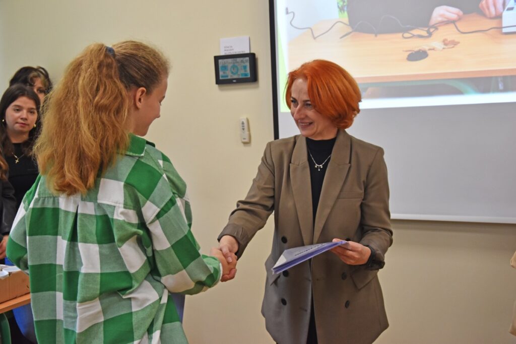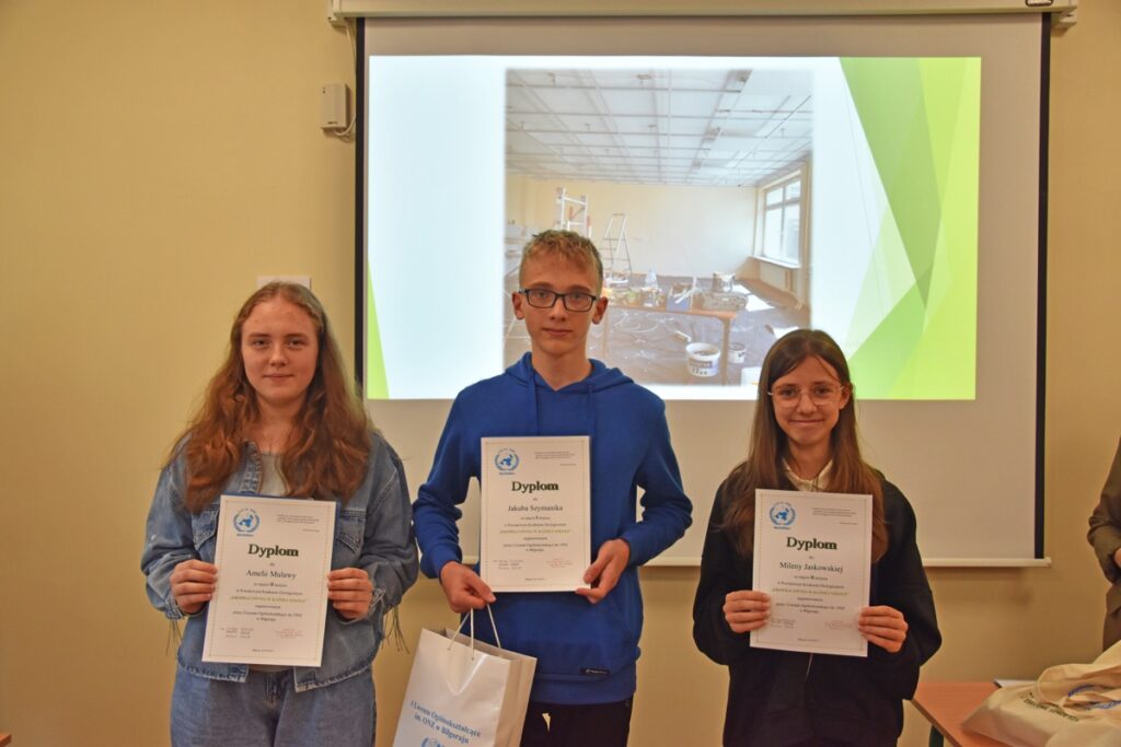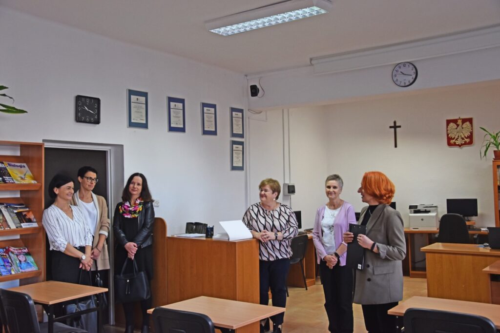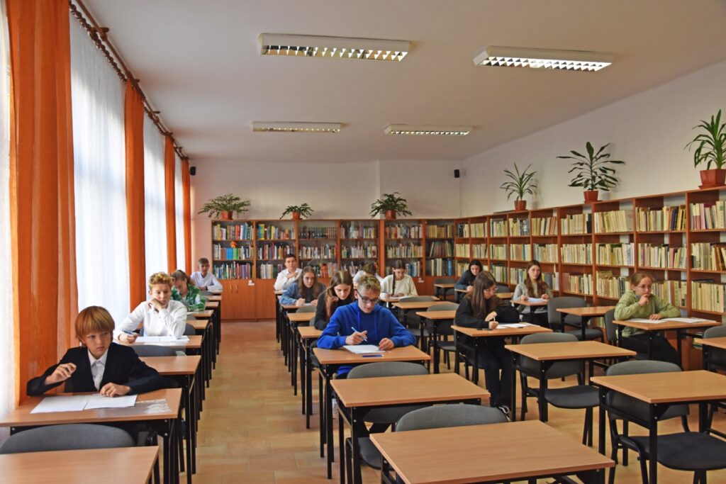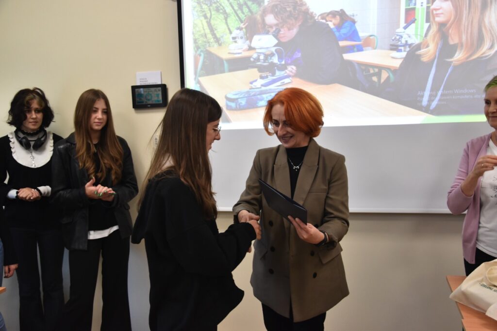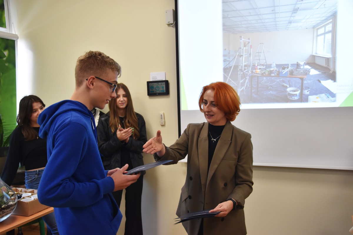 admin 2 lata temu Konkursy , Organizacyjne , Osiągnięcia26 października 2023 roku w naszym liceum odbył się Konkurs Ekologiczny dla uczniów klas siódmych i ósmych szkół podstawowych powiatu biłgorajskiego. Zwycięzcą konkursu został Jakub Szymanik ze Szkoły Podstawowej w Tarnogrodzie, kolejne równoległe miejsce zajęły Milena Jaskowska ze Szkoły Podstawowej w Dereźni Solskiej i Amelia Mulawa ze Szkoły Podstawowej w Luchowie Dolnym. Po napisaniu testu ekologicznego uczniowie wraz z opiekunami przeszli do nowo powstałej ekopracowni, na którą szkoła otrzymała dofinansowanie z projektu ,,Ekopracownia – zielone serce szkoły” realizowanego przez Wojewódzki Fundusz Ochrony Środowiska w Lublinie. W nowoczesnej pracowni młodzież zapoznała się z warunkami nauczania biologii w naszym liceum. Uczestnicy konkursu obejrzeli pomoce naukowe wykorzystywane podczas lekcji, samodzielnie prowadzili obserwacje mikroskopowe oraznauczyli się obsługi binokularu. Duże zainteresowanie młodzieży wzbudziło akwarium i hodowla patyczaków.