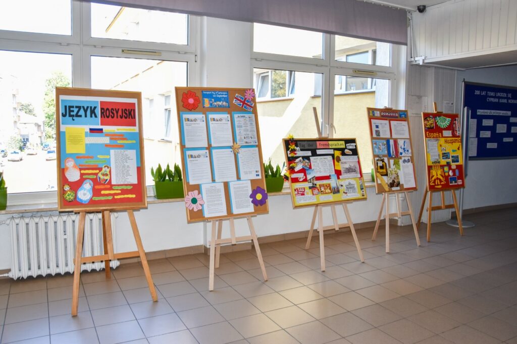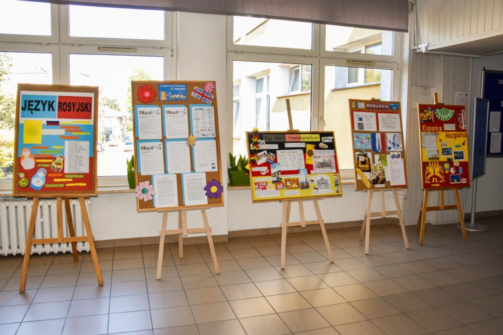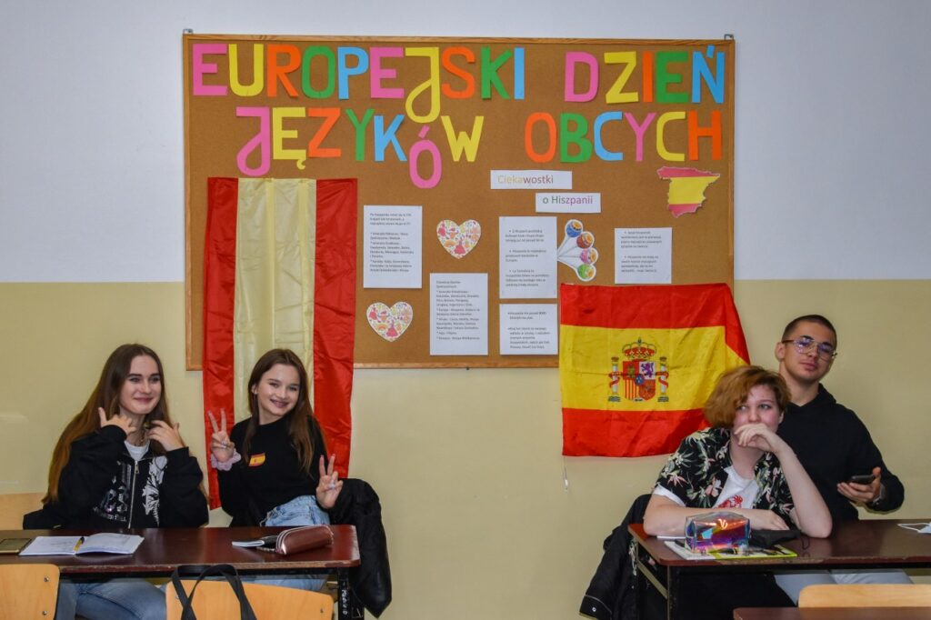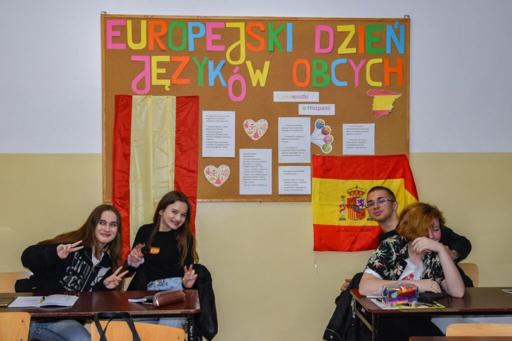 Zwyczajem lat ubiegłych nasza szkoła włączyła się w obchody Europejskiego Dnia Języków i 27 września w salach lekcyjnych i na korytarzach można było zauważyć wiele europejskich akcentów. Na lekcjach języków obcych nauczyciele prowadzili warsztaty na temat skutecznych metod uczenia się, omawiając sposoby i aplikacje pomocne w nauce słówek. Podczas quizów i prezentacji uczniowie mogli sprawdzić poziom swojej wiedzy ogólnej o krajach, których języki mamy w ofercie edukacyjnej szkoły. Na korytarzu pierwszego piętra stanęły tablice informacyjne z ciekawostkami na temat angielskiego, francuskiego, hiszpańskiego, niemieckiego i rosyjskiego. Nauczyciele języków obcych przygotowali krótkie prezentacje, które młodzież oglądała podczas przerw na szkolnym telewizorze, natomiast w salach lekcyjnych, oprócz akcentów kolorystycznych, uczniowie przygotowali poczęstunek w formie drobnych przekąsek z różnych części Europy. Dużą kreatywnością wykazali się licealiści, którzy swoim wyglądem, charakterystycznym przebraniem, barwami lub namalowanymi flagami starali się podkreślić, którego języka obcego uczą się w szkole.