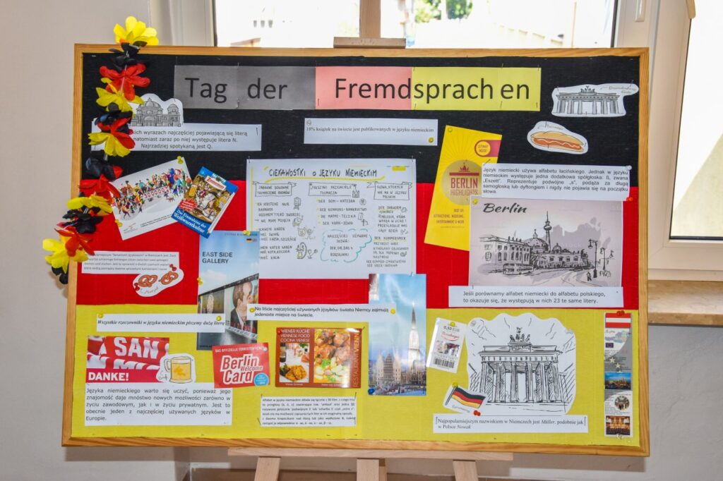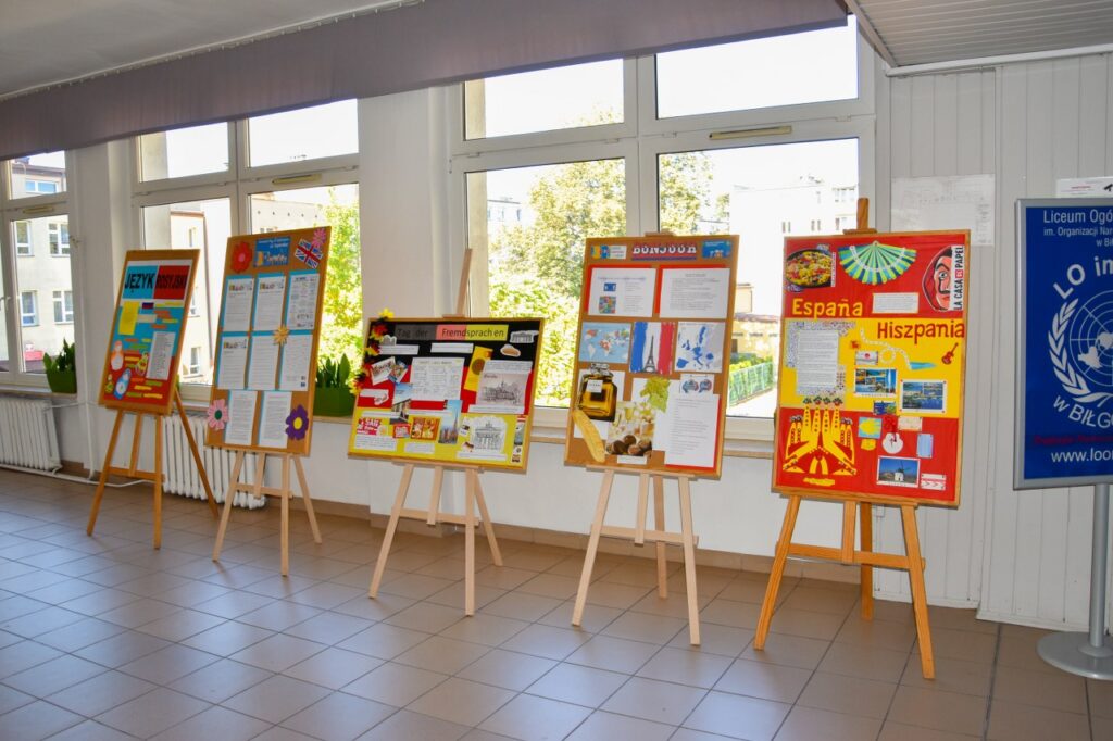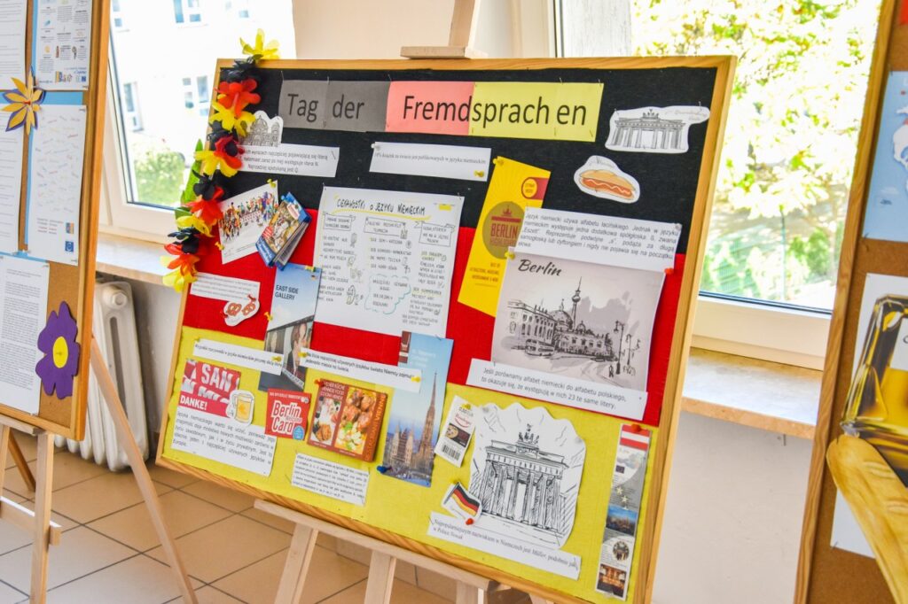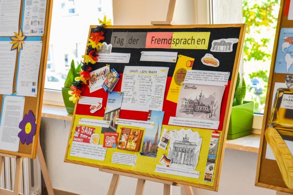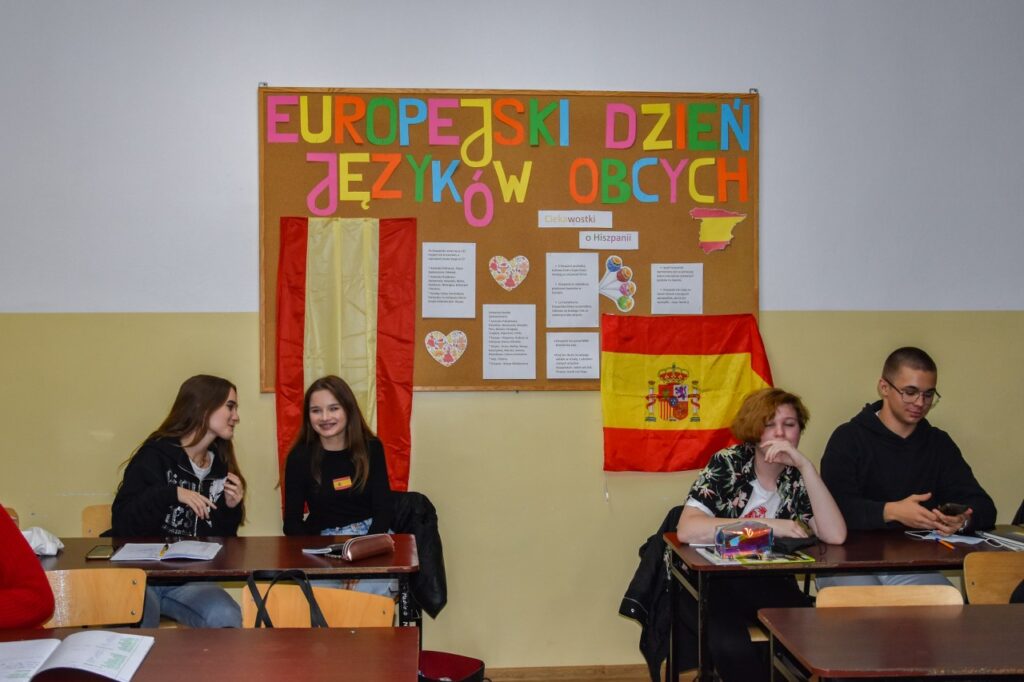Zwyczajem lat ubiegłych nasza szkoła włączyła się w obchody Europejskiego Dnia Języków i 27 września w salach lekcyjnych i na korytarzach można było zauważyć wiele europejskich akcentów. Na lekcjach języków obcych nauczyciele prowadzili warsztaty na temat skutecznych metod uczenia się, omawiając sposoby i aplikacje pomocne w nauce słówek. Podczas quizów i prezentacji uczniowie mogli sprawdzić poziom swojej wiedzy ogólnej o krajach, których języki mamy w ofercie edukacyjnej szkoły. Na korytarzu pierwszego piętra stanęły tablice informacyjne z ciekawostkami na temat angielskiego, francuskiego, hiszpańskiego, niemieckiego i rosyjskiego. Nauczyciele języków obcych przygotowali krótkie prezentacje, które młodzież oglądała podczas przerw na szkolnym telewizorze, natomiast w salach lekcyjnych, oprócz akcentów kolorystycznych, uczniowie przygotowali poczęstunek w formie drobnych przekąsek z różnych części Europy. Dużą kreatywnością wykazali się licealiści, którzy swoim wyglądem, charakterystycznym przebraniem, barwami lub namalowanymi flagami starali się podkreślić, którego języka obcego uczą się w szkole.