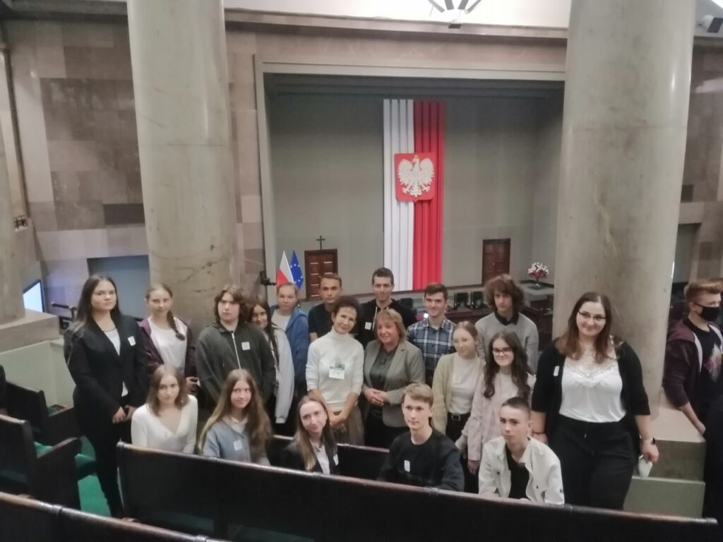 Najważniejszym punktem programu była wizyta w Sejmie RP. Po gmachu Sejmu uczestników wycieczki oprowadzała pani przewodnik, która przedstawiła historię polskiego parlamentaryzmu i podała najważniejsze informacje o strukturze izby. Pani Poseł Beata Strzałka natomiast opowiedziała młodym ludziom o pracy i zadaniach parlamentarzystów. Kolejnym punktem programu podczas pobytu w stolicy była wizyta w Muzeum Powstania Warszawskiego, a następnie spacer po warszawskiej Starówce.