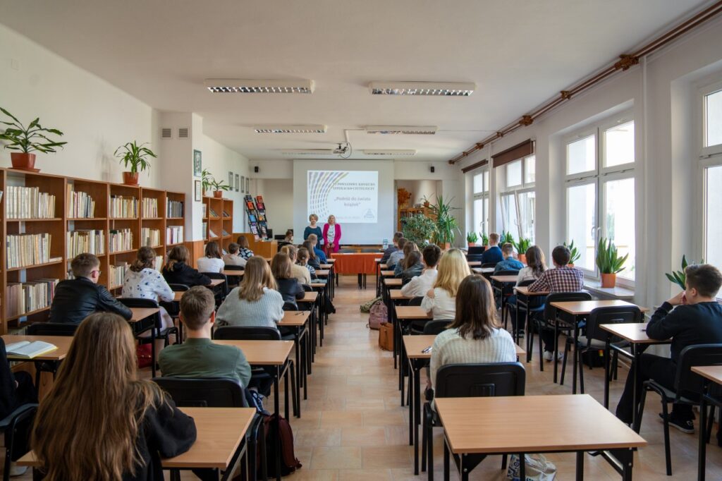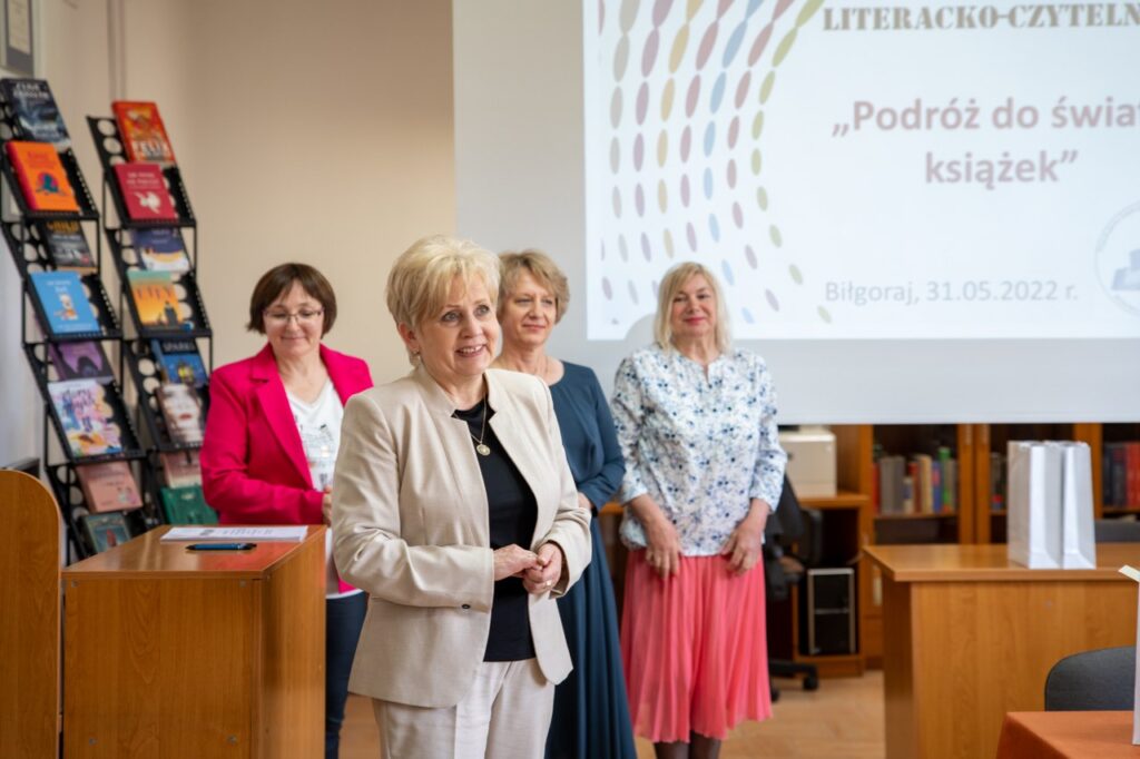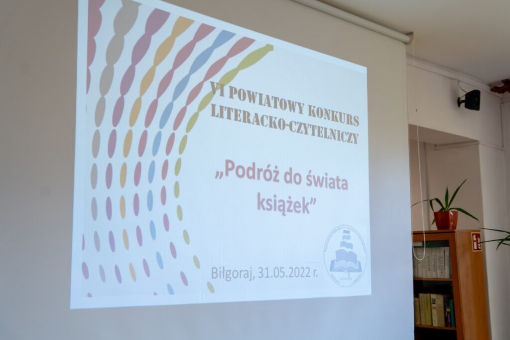 Po dwuletniej przerwie w czytelni naszej biblioteki 31 maja 2022 roku odbył się VI Powiatowy Konkurs Literacko – Czytelniczy  „Podróż do świata książek”, w którym wzięło udział 29 uczniów z 12 szkół podstawowych Powiatu Biłgorajskiego. Głównym celem konkursu, któremu towarzyszyła wystawa nowości wydawniczych dla młodzieży, była promocja czytelnictwa oraz rozwijanie pasji i zainteresowań literackich uczniów. Tegoroczna edycja poświęcona była życiu i twórczości Adama Mickiewicza, ze szczególnym uwzględnieniem utworów: „Pan Tadeusz” oraz „Dziady” cz. II. Wybór tematyki konkursowej nie był przypadkowy, ponieważ 2022 rok został ustanowiony przez Sejm RP Rokiem Romantyzmu Polskiego w związku z przypadającą 200. rocznicą pierwszego wydania „Ballad i romansów” Adama Mickiewicza. Od 1822 roku datuje się także początek epoki romantycznej w Polsce.