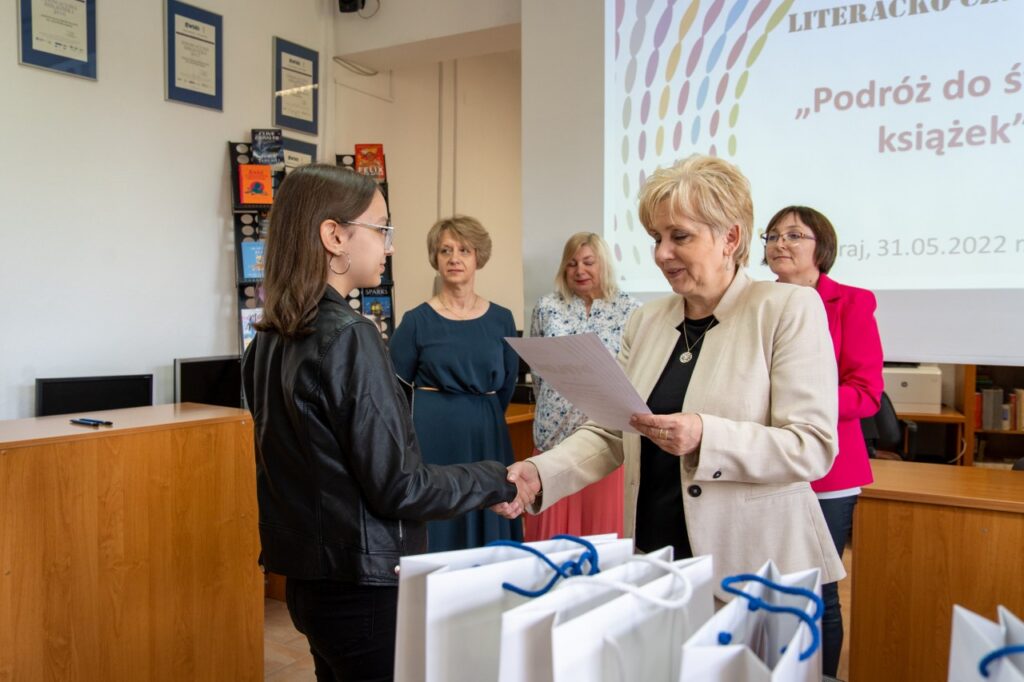 Wszyscy uczestnicy konkursu otrzymali pamiątkowe dyplomy, a najlepsi uczniowie również nagrody książkowe. Zarówno wybrane nowości wydawnicze wyeksponowane na wystawie, jak i nagrody dla młodzieży zostały zakupione w ramach „Narodowego Programu Rozwoju Czytelnictwa 2.0. na lata 2021-2025”.