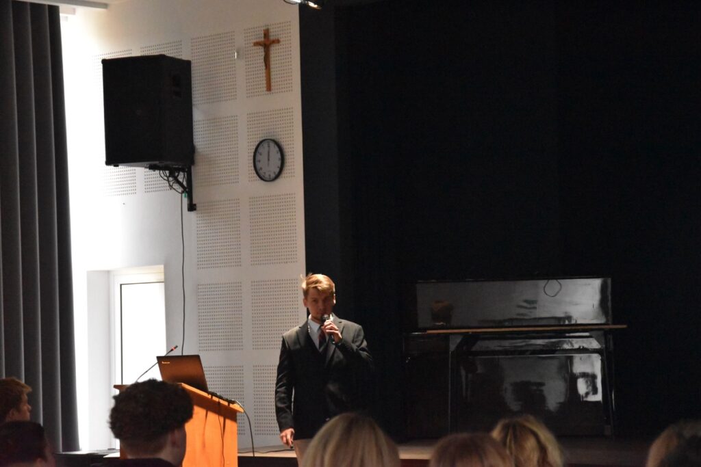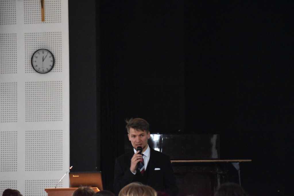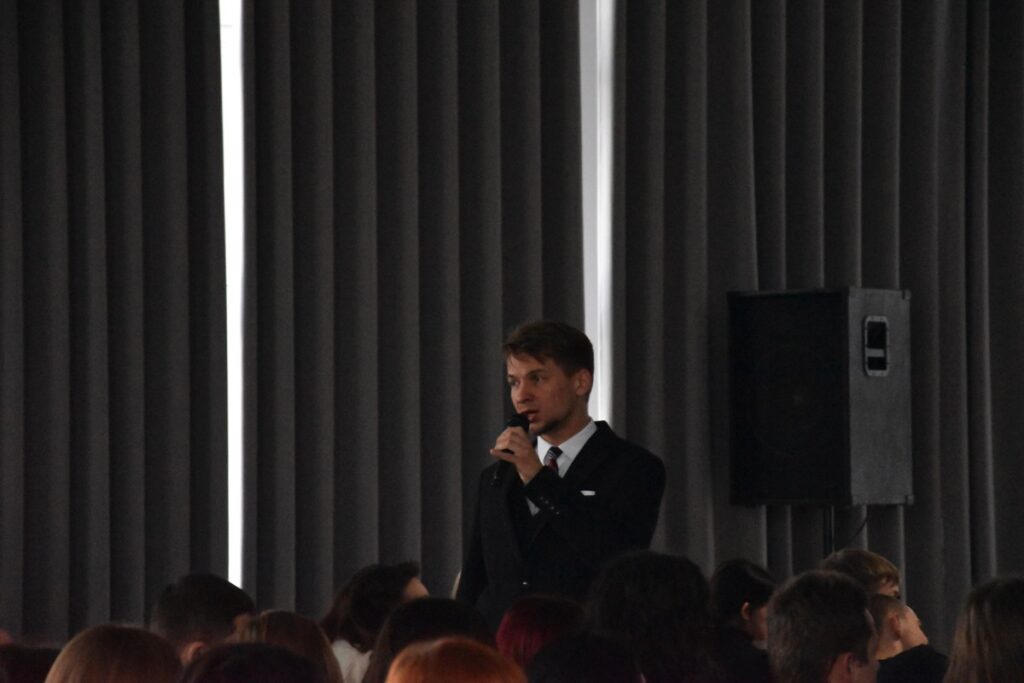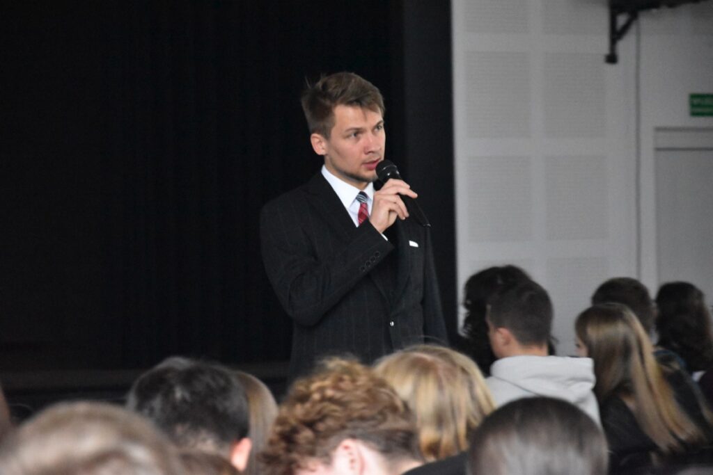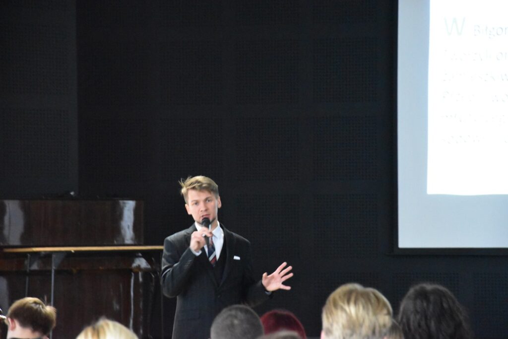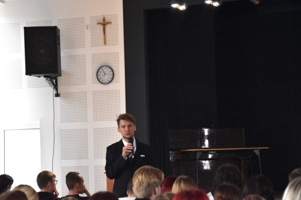 admin 3 lata temu Organizacyjne2 listopada 2022 r. w auli odbyła się lekcja otwarta historii „Tak jak by nas nigdy nie było”. W trakcie zajęć uczniowie zostali zapoznani z informacjami o kulturze żydowskiej i jej miejscu w kulturze dawnej Polski, a także roli ludności żydowskiej w społeczności miejskiej dawnego Biłgoraja. Ważnym ogniwem lekcji było omówienie Akcji „Reinhardt” i przebiegu wysiedlenia do obozu zagłady biłgorajskich Żydów. Wydarzenie to miało miejsce dokładnie 80 lat temu, czyli 2 listopada 1942 roku. Podczas zajęć uczniowie z klas: IV Ep, IV Fp, III E i II B, a także członkowie koła historii regionalnej poznali wojenne losy Pawła i Wiktorii Trzcińskich, mieszkańców Biłgoraja, którzy za pomoc udzieloną Żydom zostali rozstrzelani przez Niemców na początku 1943 roku. Odtworzone zostały także nagrania opowieści ich córki – Gabrieli Gorzandt, która relacjonowała wydarzenia z lat okupacji niemieckiej w Biłgoraju.