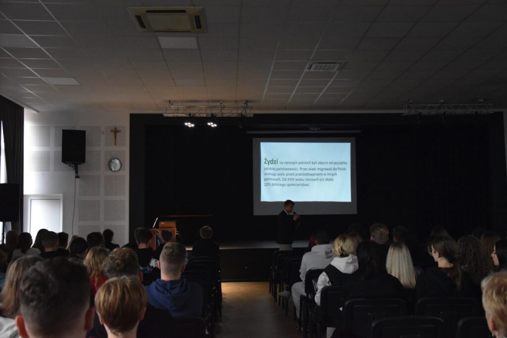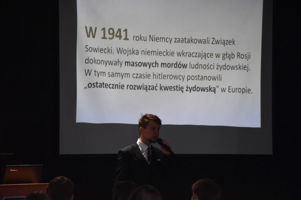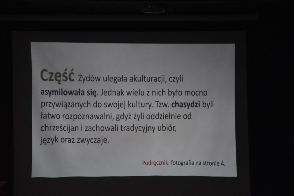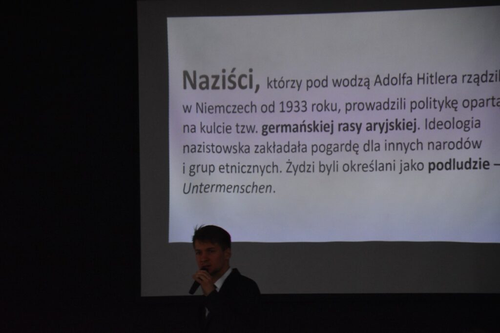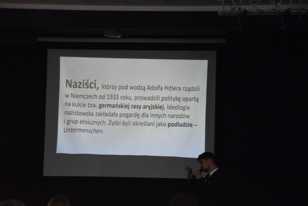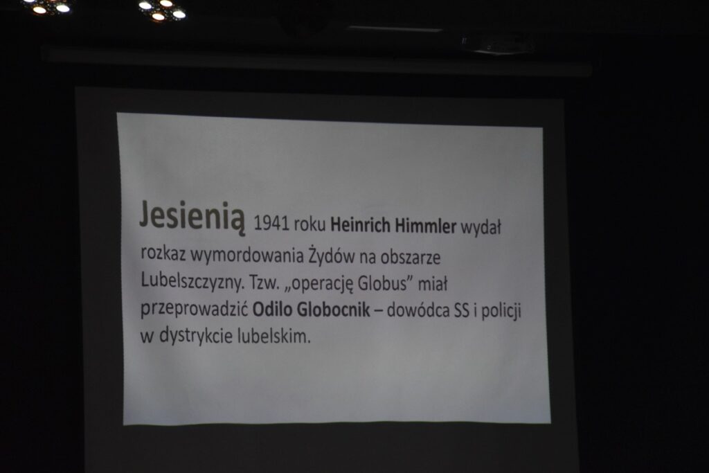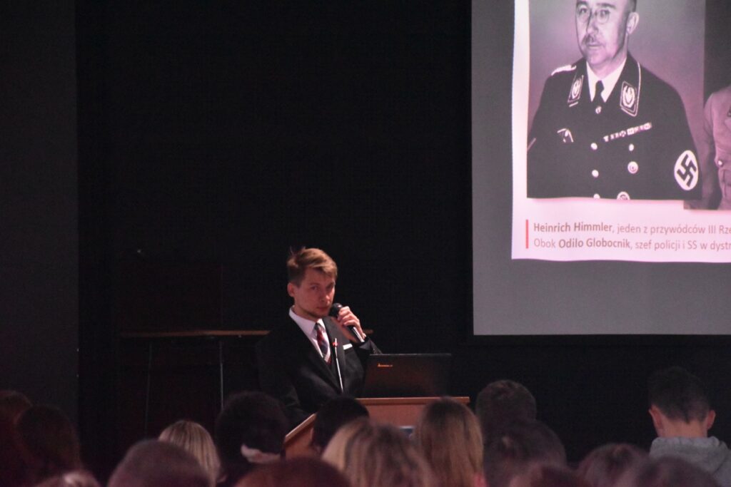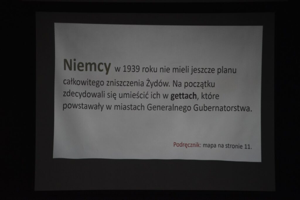 Lekcję przygotował pan Krzysztof Rudy w ramach ogólnopolskiej akcji pod nazwą „80. rocznica Akcji Reinhardt” przy wsparciu Ministerstwa Kultury i Dziedzictwa Narodowego. Uczestnicy zajęć otrzymali krótkie podręczniki oraz filmy dokumentalne na temat przebiegu Zagłady. Zajęciom towarzyszyła wystawa plansz edukacyjnych, którą w szkole będzie można obejrzeć jeszcze przez kilka dni.