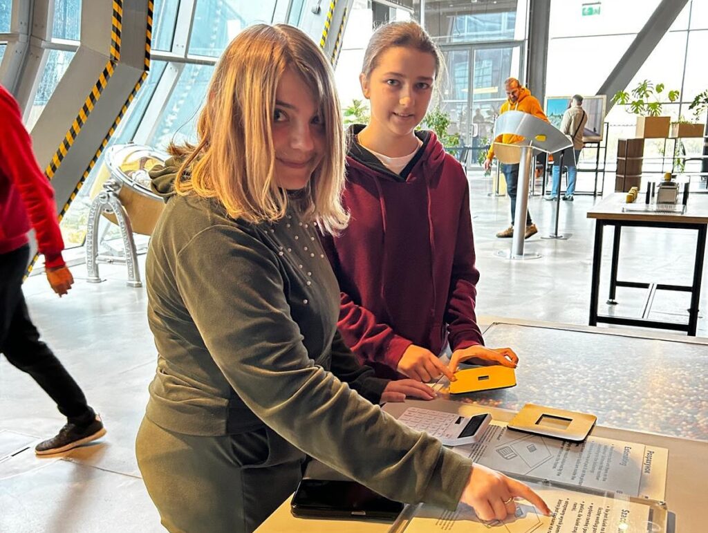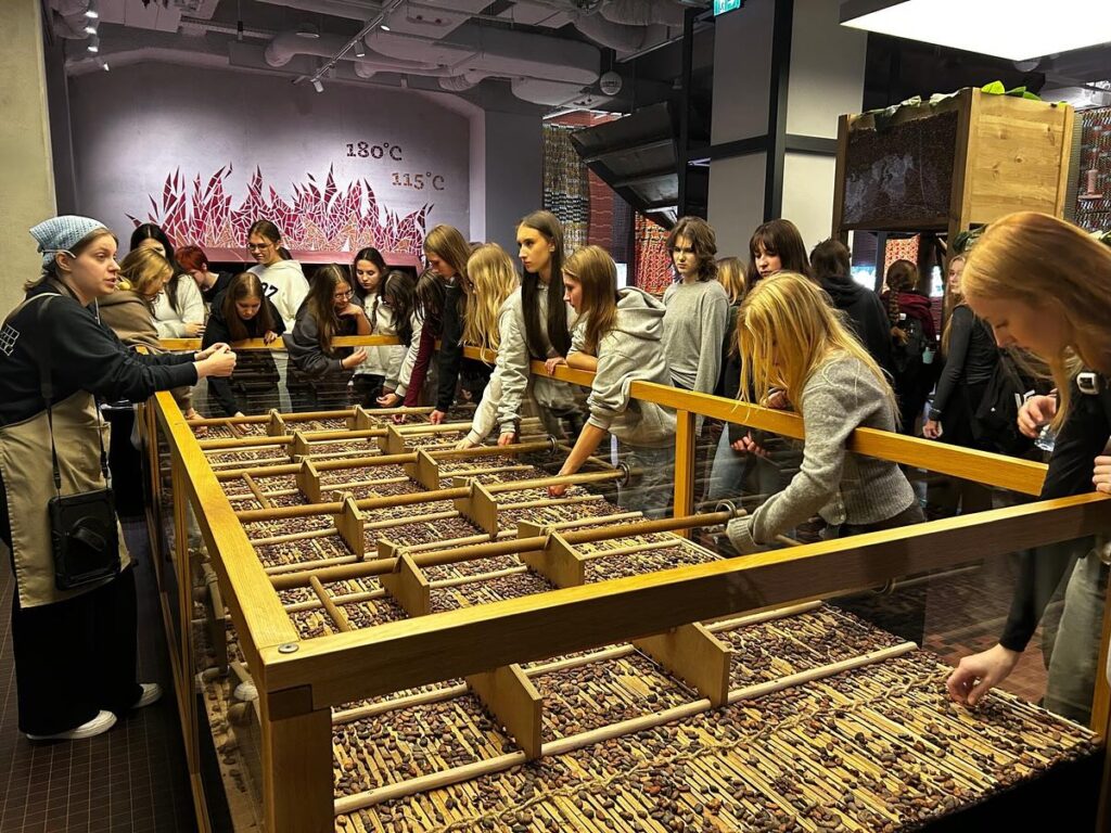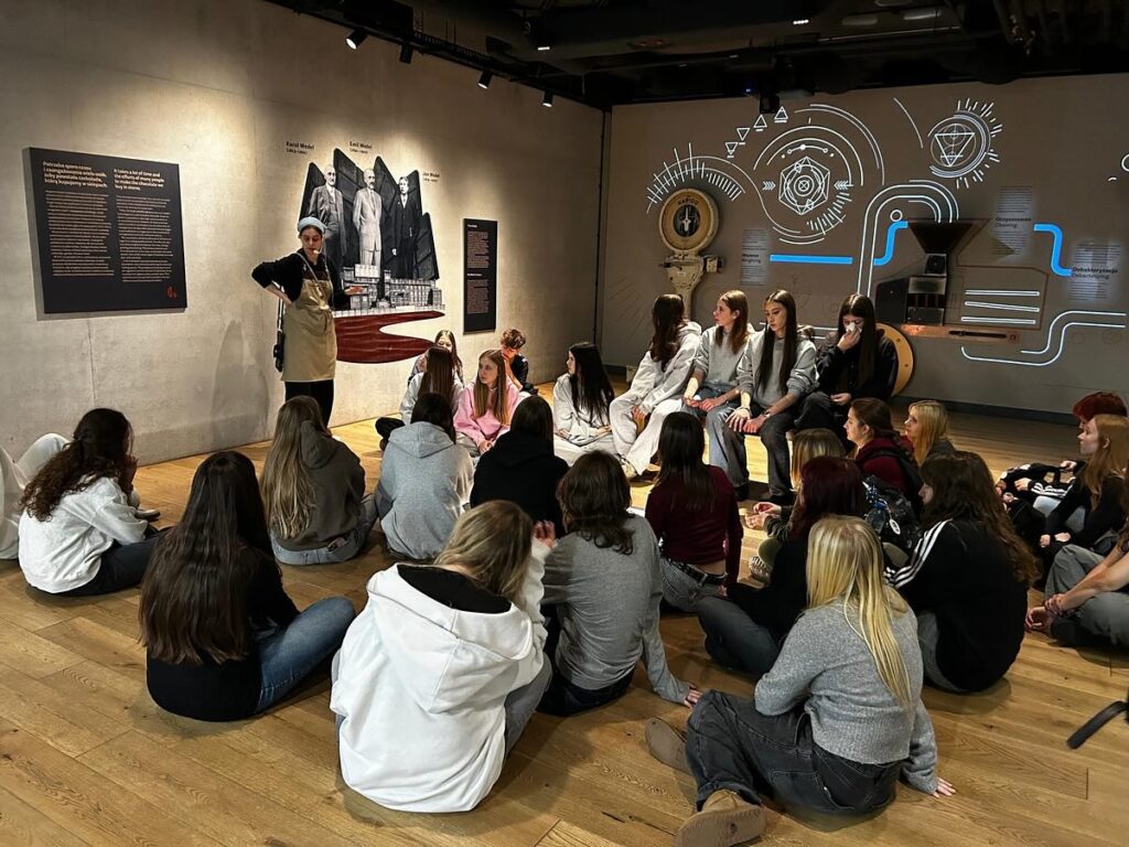 admin 5 miesięcy temu Organizacyjne , Wycieczki28 października 2025 roku klasa I C wzięła udział w pełnej wrażeń wycieczce do Warszawy. Najpierw uczniowie odwiedzili Centrum Nauki Kopernik, gdzie zachwycili się nowoczesnymi eksperymentami i interaktywnymi wystawami. W Planetarium mieli też okazję obejrzeć pokazy w 3D, dzięki czemu dowiedzieli się, jak odnaleźć Gwiazdę Polarną oraz jakie inne ciekawe obiekty i zjawiska można zobaczyć na niebie. Ponadto obejrzeli interesujący film „Czarne dziury: nieznane horyzonty”.Następnie spacerem dotarli do Fabryki Czekolady E. Wedla, gdzie mogli poznać krok po kroku tajniki produkcji ulubionego przysmaku. To nowoczesne i interaktywne muzeum prezentuje również niezwykłą historię rodziny Wedlów, która stworzyła to wyjątkowe miejsce. Tam też na licealistów czekała słodka niespodzianka w postaci prażonego ziarna kakaowca, płynnej czekolady, a także mrożonego ptasiego mleczka. Kolejną atrakcją dla młodzieży była możliwość projektowania własnych opakowań na czekoladki, a następnie zabawa w strefie relaksu.