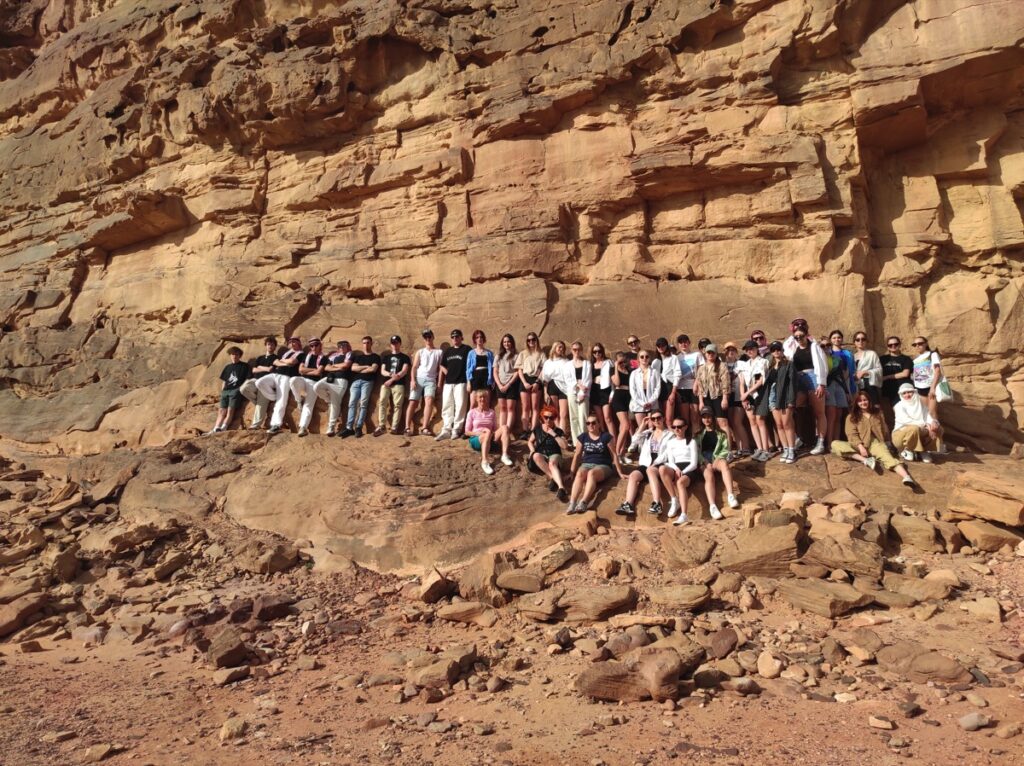 admin 3 lata temu Organizacyjne , WycieczkiW dniach 19-27 marca 2023 uczniowie naszej szkoły odbyli wyjątkową podróż do Izraela i Jordanii. W ciągu ośmiu dni zwiedzili stolicę Izraela Tel Aviv z najstarszą dzielnicą – Jaffą oraz miejsca związane z religią chrześcijańską: Grotę Narodzenia i Golgotę, spacerowali po Jerozolimie i Betlejem. Odwiedzili także Dom Dziecka prowadzony przez polskie siostry zakonne. Zwiedzanie Jordanii licealiści rozpoczęli od Góry Nebo, skąd według historii biblijnej Mojżesz spoglądał na Ziemię Świętą. Następnie podziwiali wspaniałą architekturę Madaby, a po intensywnej wycieczce po mieście oddawali się przyjemności plażowania oraz kąpieli w Morzu Martwym. Niezwykłym przeżyciem dla uczestników był jeep tour, przejażdżka samochodami terenowymi po pustyni Wadi Rum oraz noc spędzona w jurtach w niezwykłych okolicznościach przyrody. Dużą przyjemność młodzieży sprawił także relaks nad najcieplejszym morzem na kuli ziemskiej – Morzem Czerwonym. Podróż zakończyła się w stolicy Jordanii – Ammanie, skąd licealiści wrócili samolotem do Polski.