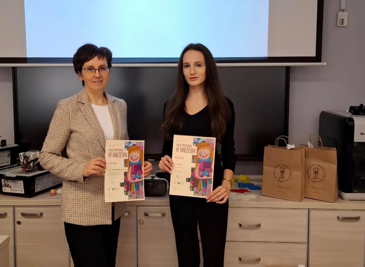 admin 3 dni temu Konkursy , Organizacyjne , OsiągnięciaGreta Zań z klasy IV A zdobyła główną nagrodę w 46. Międzynarodowym Konkursie Plastycznym dla Dzieci i Młodzieży „Moja Przygoda w Muzeum” w kategorii wiekowej 16-18 lat. Na konkurs, organizowany przez Muzeum Okręgowe w Toruniu, wpłynęło prawie 1400 prac z całego świata m. in. z Bangladeszu, Chorwacji, Estonii, Indonezji, Iranu, Litwy, Łotwy, Macedonii Płn., Rosji, Serbii, Singapuru, Tajwanu, Turcji i Polski. Jury podkreśliło bardzo wysoki poziom przesłanych prac i niezwykle wyrównany poziom artystyczny uczestników. Grafika komputerowa pt. „Przeszłość i teraźniejszość” przygotowana przez Gretę pokazuje muzeum jako niezwykłe miejsce spotkania historii ze współczesnością.