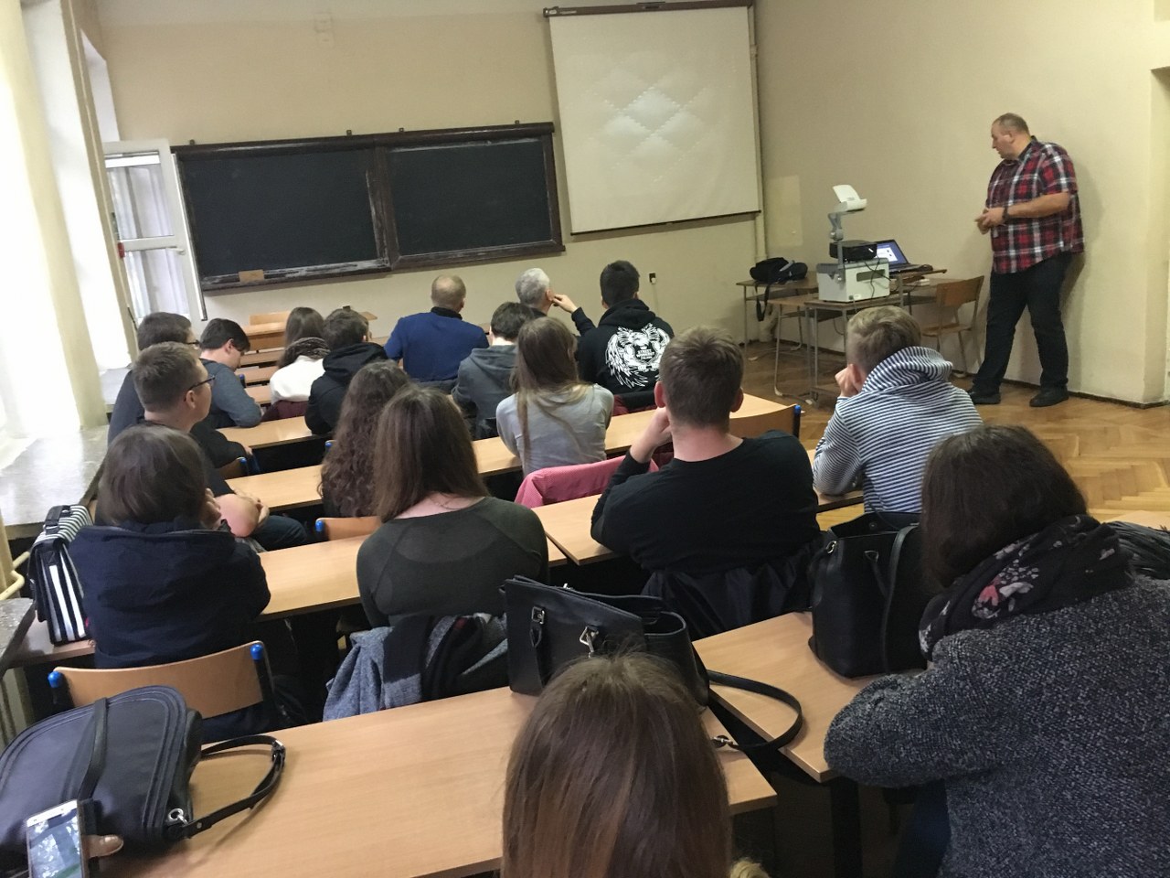 img_4340W ramach patronatu naukowego w  dniu 25.10.2016 r. uczniowie klas liceum odwiedzili Wojskową Akademię Techniczną (WAT) w Warszawie. Spotkali się z kadrą dydaktyczną uczelni oraz studentami i wysłuchali interesujących wykładów. Pierwszy z nich dotyczył złotej proporcji. Uczniowie nie tylko dowiedzieli się, co oznacza to pojęcie, ale również zrozumieli, skąd ono się wzięło i gdzie ma zastosowanie. Kolejnym punktem programu było spotkanie dotyczące zachowania się ciała ludzkiego podczas wypadku. Wykład bardzo dokładnie uświadomił młodym ludziom, jak ważne jest bezpieczeństwo na drodze, a szczególnie jak istotne jest zapinanie pasów. Po kolejną dawkę wiedzy licealiści udali się na lekcję dotyczącą hipotezy continuum. Tam uświadomili sobie, jak bardzo szeroką i do końca nie zbadaną jeszcze dziedziną jest matematyka. Ostatnią atrakcją wyjazdu było zwiedzanie hangaru wojskowego, gdzie uczniowie mieli okazję zobaczyć sprzęt wojskowy. Pobyt na uczelni, poznanie zasad studiowania w Wojskowej Akademii Technicznej oraz udział w wykładach były dla licealistów bardzo ciekawe.