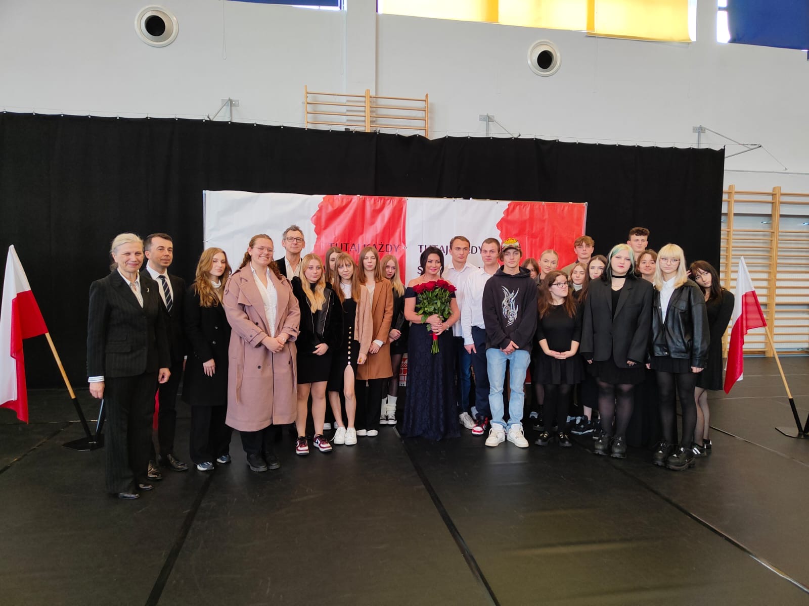 admin 2 lata temu OrganizacyjneLicealiści z klasy III F mieli okazję zaprezentować się podczas koncertu patriotyczno-edukacyjnego pt. „Melodia nadziei – heroizm Polaków pod okupacją niemiecką na przykładzie rodziny Ulmów”. Wspólnie ze światowej sławy śpiewaczką Alicją Węgorzewską pięknie zaśpiewali „Deszcz, jesienny deszcz” oraz „Hymn Armii Krajowej”. Podczas koncertu 30.10.2023 r. w ZSBiO śpiewał i grał znany wokalista Maciej Miecznikowski, przed publicznością wystąpił także muzyk, pianista Robert Grudzień. Uznani artyści wykonali również wiele utworów solowych. Koncert bardzo podobał się publiczności, a oprócz naszej młodzieży swój talent wokalny zaprezentowały dzieci ze Szkoły Podstawowej nr 1 w Biłgoraju oraz seniorzy. Międzypokoleniowy, patriotyczny koncert bardzo podobał się widowni, czego wyrazem były gromkie brawa.