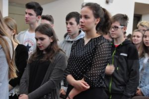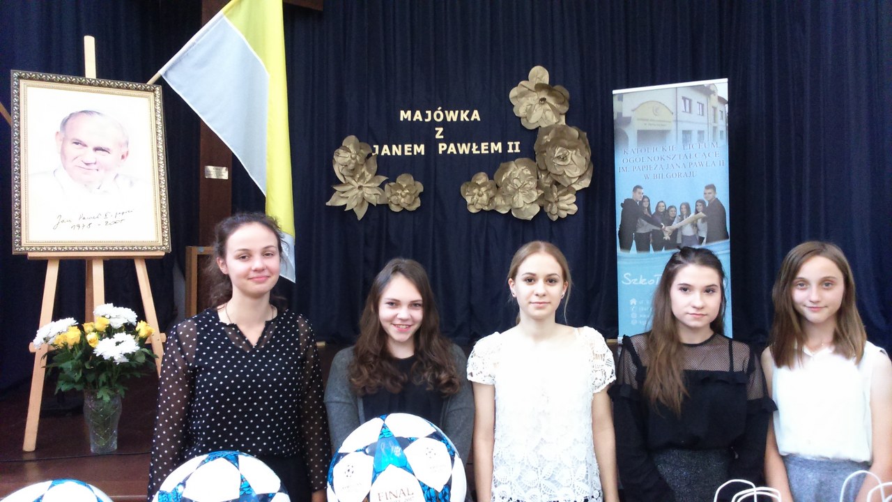 admin 8 lat temu OsiągnięciaW ramach obchodów rocznicy urodzin Papieża Polaka w KLO w Biłgoraju zorganizowano dla uczniów gimnazjów i szkół podstawowych z terenu powiatu biłgorajskiego konkurs recytatorski. Naszą szkołę reprezentowało pięć uczennic z klasy III a.