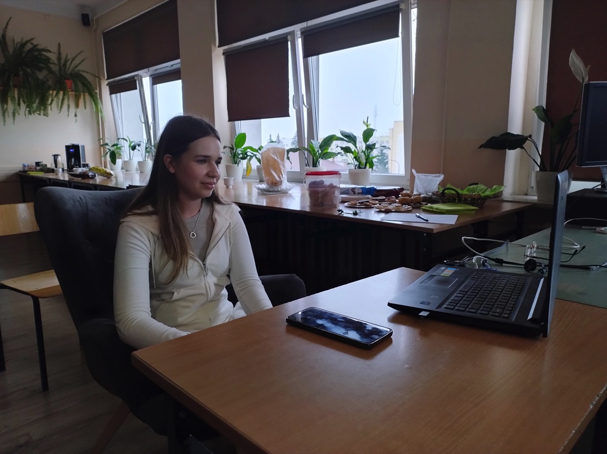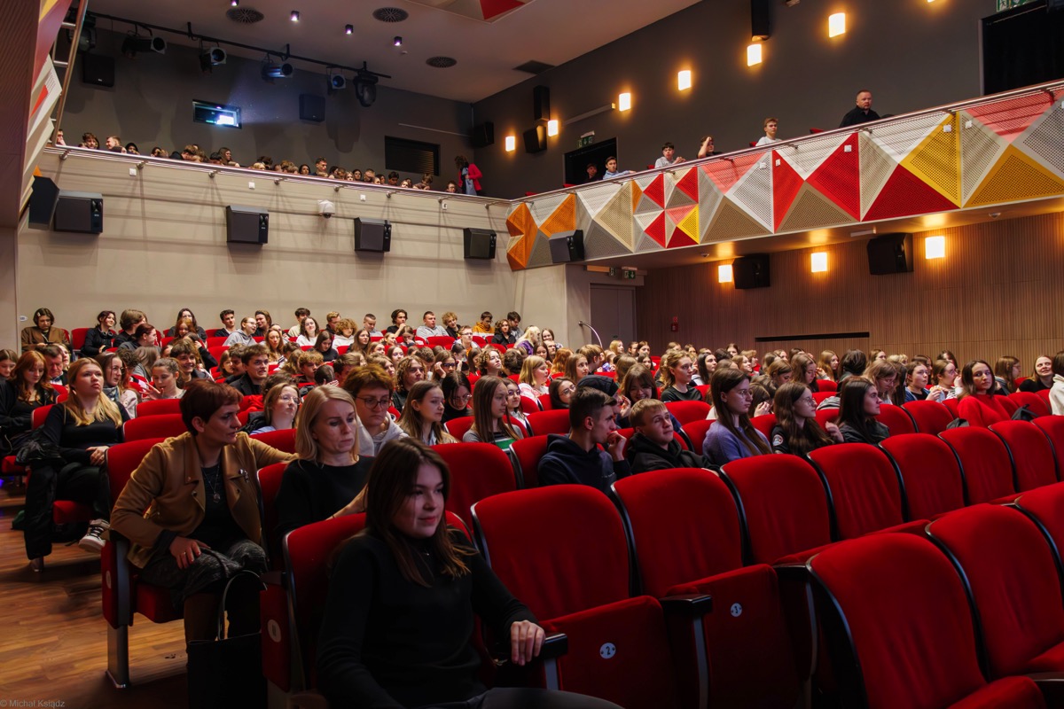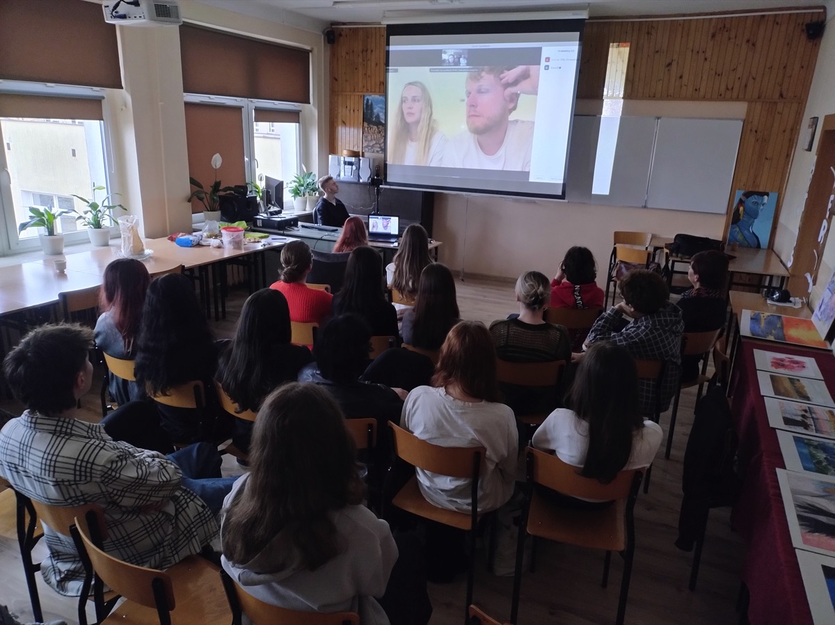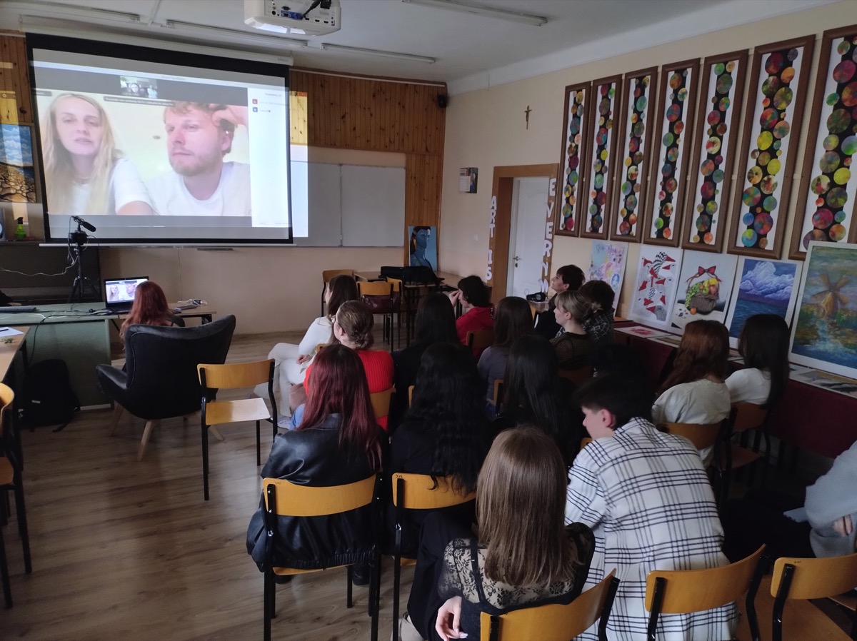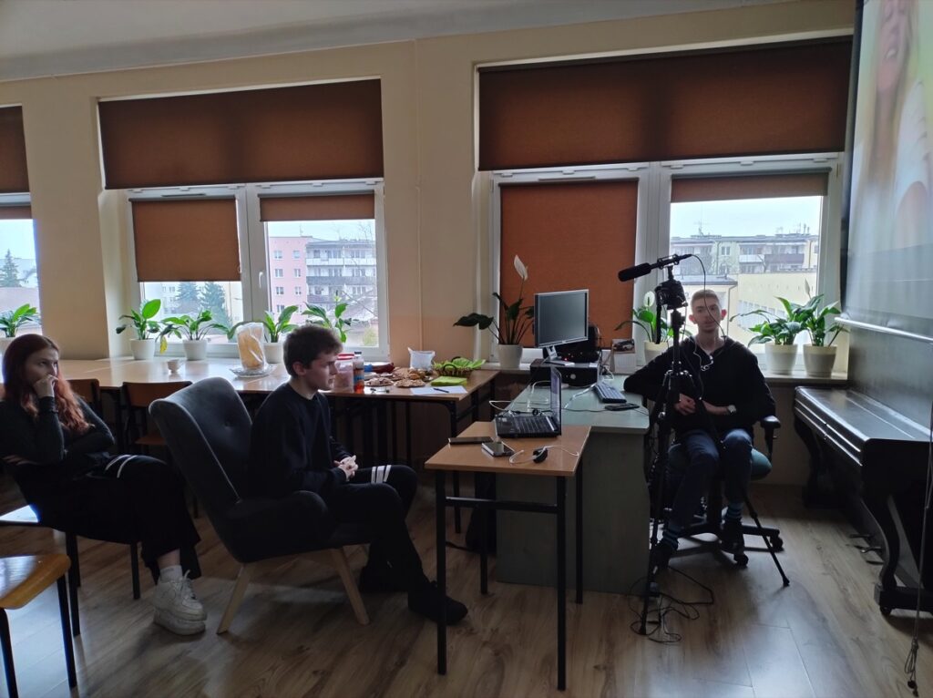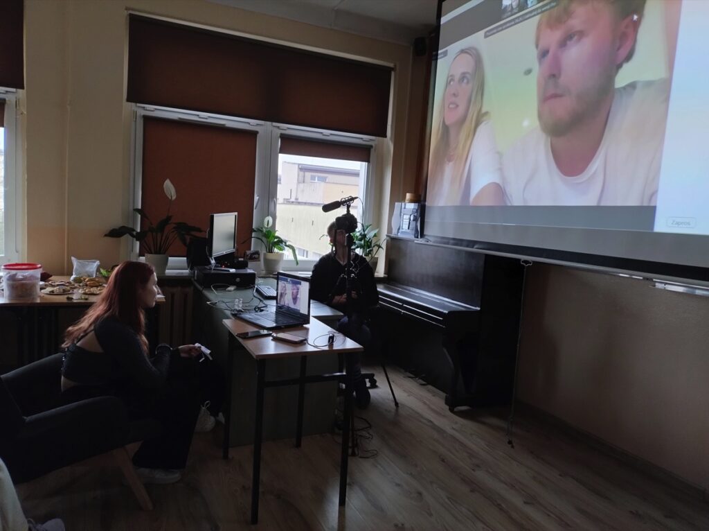 Twórcami filmu są znani młodzieży z naszego liceum filmowcy: Katarzyna Machałek- absolwentka I LO im. ONZ oraz Łukasz Machowski. W ubiegłym roku po projekcji filmu „Dzień i Noc” uczniowie z SKF przeprowadzili wywiad z twórcami tego obrazu filmowego w BCK w Biłgoraju. W tym roku również zorganizowano spotkanie, ale w nietypowej scenerii, ponieważ Katarzyna Machałek i Łukasz Machowski połączyli się z młodzieżą ze SKF za pośrednictwem platformy ZOOM z dalekiego Bangkoku w Azji. To karkołomne zadanie techniczne (wyświetlenie obrazu na dużym ekranie, nagranie całego wydarzenia, zainstalowanie dodatkowej kamery, mikrofonu), dzięki staraniom uczniów uzdolnionych technicznie oraz z pomocą nauczyciela informatyki, udało się zrealizować w szkole i uzyskać połączenie z Bangkokiem. Państwo reżyserzy po porannej kawie, a młodzież w Polsce późnym popołudniem dzielili się wrażeniami po obejrzeniu filmu. Pytania młodzieży dotyczyły różnych zagadnień: etapów powstawania filmu, wyboru ośrodka wychowawczego oraz nieprofesjonalnych aktorów, powstawania scenariusza i nagrywania scen w nim nieujętych, które powstawały spontanicznie, a co wyraźnie podkreślali autorzy filmu, zostały włączone do realizacji i stawały się ważną częścią filmu. Uczniowie pytali o reakcję widzów po premierze, które były różnorodne. Każdy odbierał ten film inaczej, zależnie od: wieku, doświadczeń życiowych i wiedzy o tego typu ośrodkach. Interesowano się losem tytułowych „chłopaków”, którzy opuścili już placówkę. Pytano również o wpływ filmu na życie wychowanków, którzy zgodzili się odsłonić swoją codzienność. Przyglądano się wychowawcom poświęcającym się trudnej pracy, której nie można porównać do zajęć w szkole ogólnodostępnej. Na koniec padły pytania do młodych twórców filmowych dotyczące ich planów na przyszłość i nowych realizacji. Otrzymano zapewnienie, że powstaną nowe projekty równie ciekawe i nowatorskie. Wywiad trwał ponad godzinę, czas upłynął bardzo szybko w miłej atmosferze. Państwo reżyserzy bardzo profesjonalnie i wyczerpująco odpowiadali na pytania, odsłaniając etapy powstawania filmu. Zachwycili sposobami budowania relacji z rozmówcami i szczerością odpowiedzi, które wykraczały czasami poza sferę zawodową, dotykając życia osobistego. Wywiad został utrwalony na nagraniu i zapewne można go będzie obejrzeć na stronie szkoły.