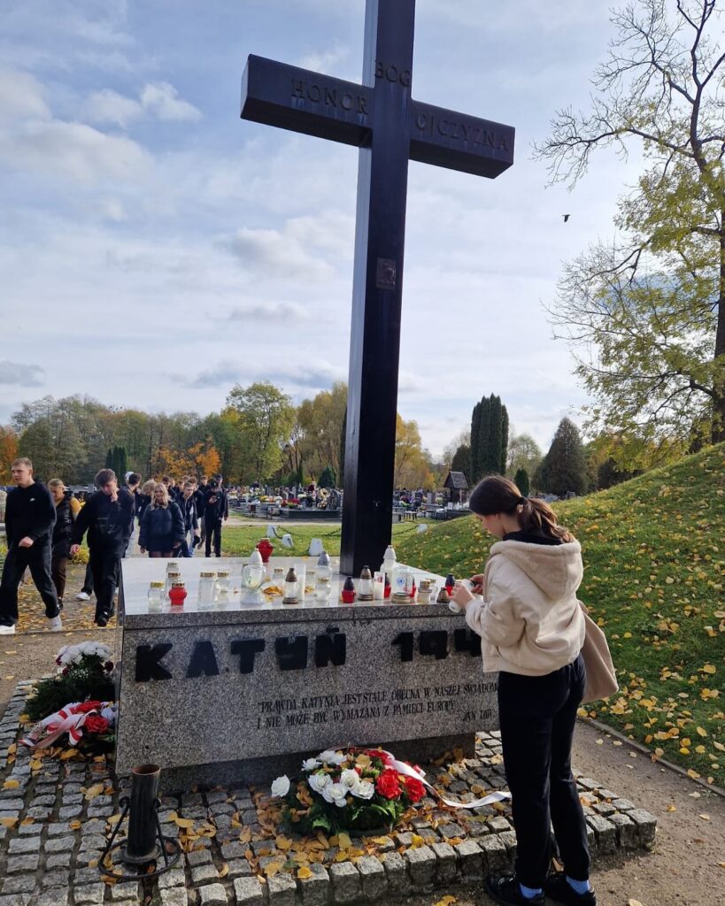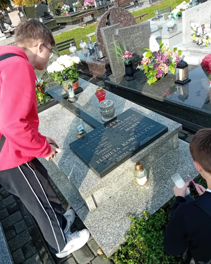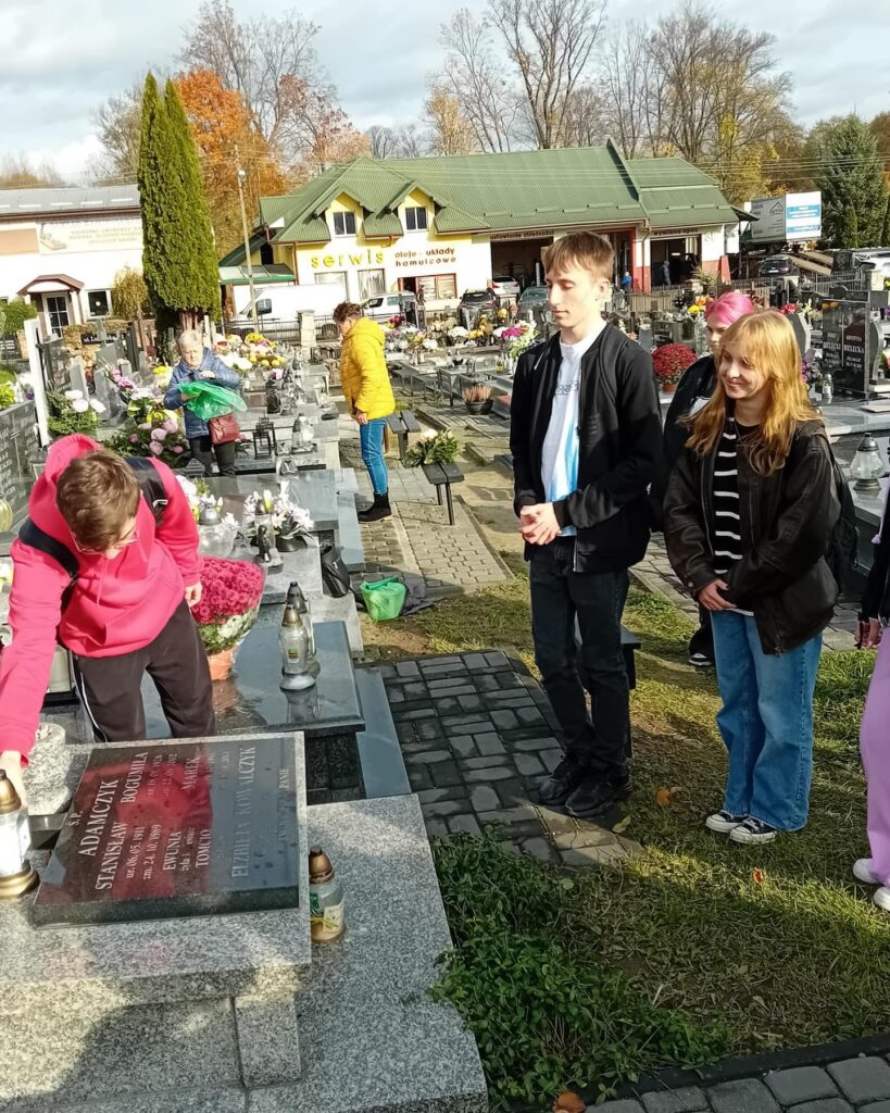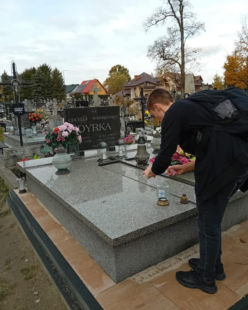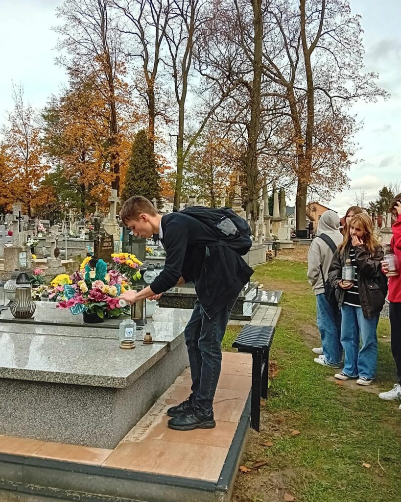 admin 1 rok temu Organizacyjne , UroczystościPamięć o wszystkich, którzy odeszli na zawsze, jest bardzo ważnym ogniwem naszej kultury. Często myślimy o ludziach dla nas ważnych i bliskich naszemu sercu, wspominamy osoby zasłużone dla lokalnej społeczności oraz walczących w obronie ojczyzny. Do refleksji o przemijaniu i kruchości ludzkiego życia szczególnie skłania listopad. Odwiedzamy wtedy groby, zapalamy znicze i modlimy się za zmarłych. Jako społeczność szkolna kultywujemy także pamięć o wszystkich nauczycielach i pracownikach oświaty, którzy tworzyli historię naszego liceum i kształtowali kolejne pokolenia.Zwyczajem lat ubiegłych w tym roku także w ostatnich dniach października i na początku listopada uczniowie z nauczycielami odwiedzili cmentarze i miejsca pamięci, gdzie zapalili znicze oraz uczcili pamięć zmarłych pedagogów i pracowników naszej szkoły.