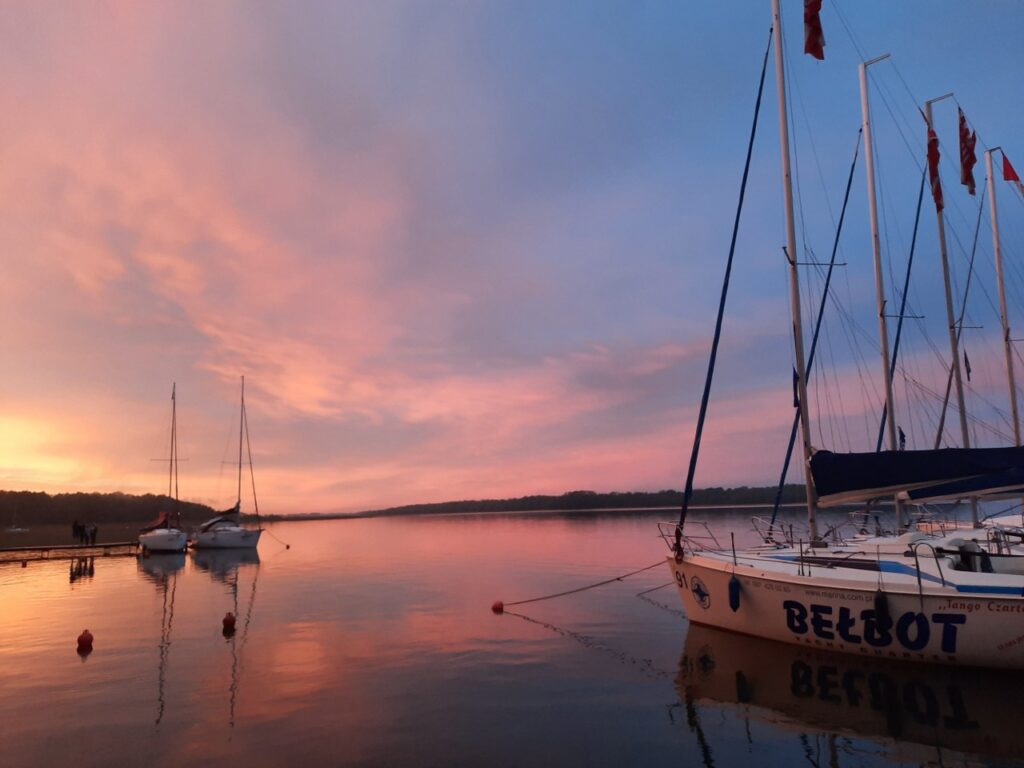 admin 4 lata temu Organizacyjne , Sport , WycieczkiW dniach 22-27 maja 2022 r. uczniowie naszej szkoły uczestniczyli w wyprawie na Mazury w ramach „Klasy pod żaglami”. Rejs wiódł przez jeziora: Niegocin, Kisajno, Dargin, Dobskie, Mamry i był okazją do spotkania z absolwentami liceum. Pełnili oni funkcje sterników, a swoją przygodę z żeglarstwem rozpoczęli podczas rejsów organizowanych przez szkołę. Oprócz pływania młodzież odwiedziła Muzeum Indian w Spytkowie i śluzę w Łękach Górnych na Kanale Mazurskim, poznała arkana żeglarstwa (praca z żaglami, trzymanie kursu, prace bosmańskie) oraz spotkała się przy ognisku z instruktorem nurkowania. Ciekawym doświadczeniem było obserwowanie zmagań żeglarzy w ramach Akademickich Mistrzostw Polski na jeziorze Niegocin.