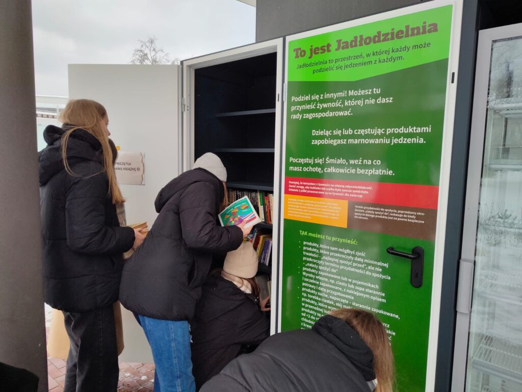 admin 2 lata temu OrganizacyjneMłodzież ze Szkolnego Koła Wolontariatu we współpracy z Fundacją Fundusz Lokalny Ziemi Biłgorajskiej podjęła nowe wyzwanie i w styczniu 2024 roku przejęła opiekę nad Książkodzielnią i Jadłodzielnią Biłgorajską. Uczennice uporządkowały i opieczętowały liczny księgozbiór, który został zgromadzony w społecznej mikrobibliotece na Placu Wolności, obok Biłgorajskiej Jadłodzielni. W styczniu i lutym regularnie odwiedzały to miejsce, a także dbały o ład i porządek biblioteczki oraz lodówki z żywnością.
