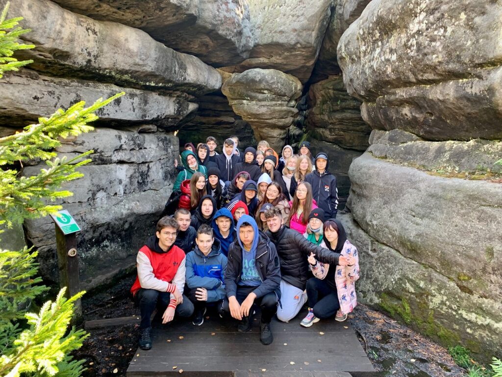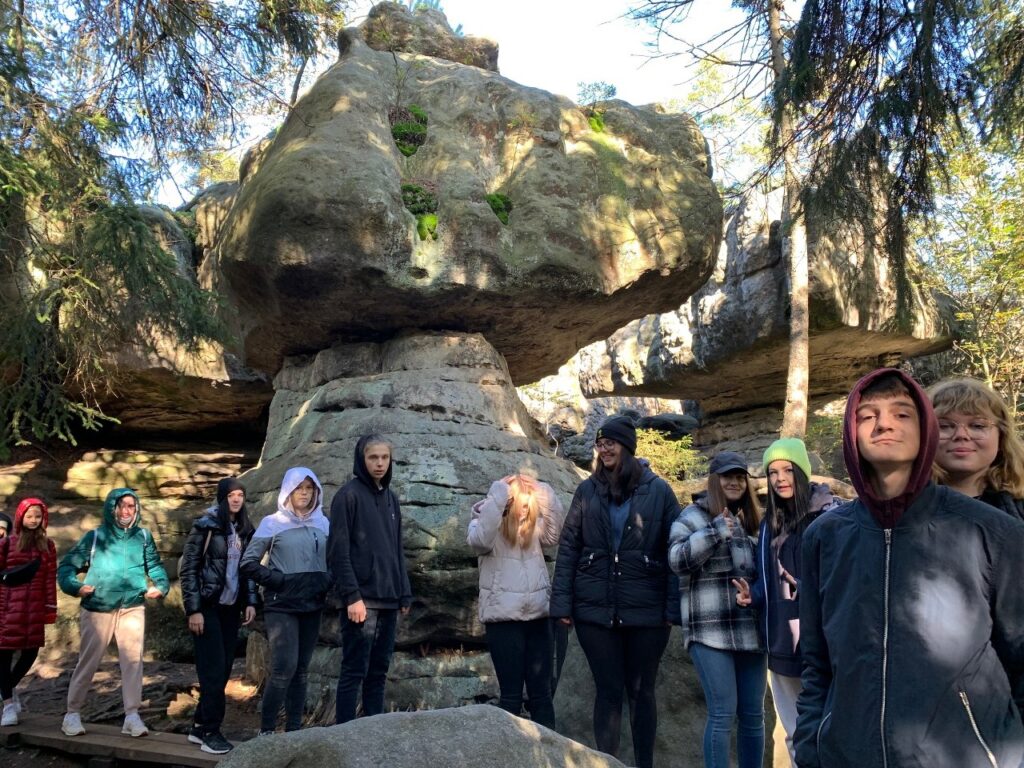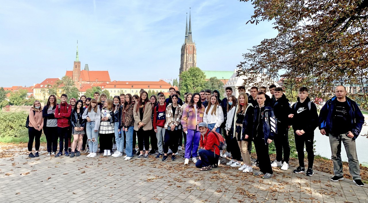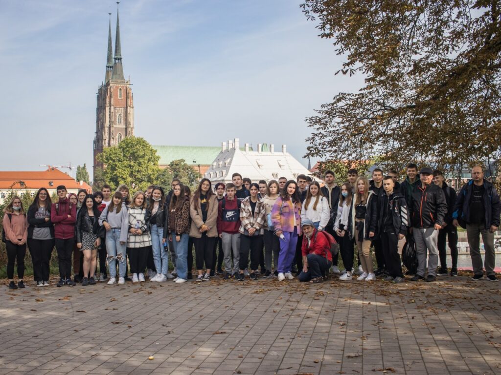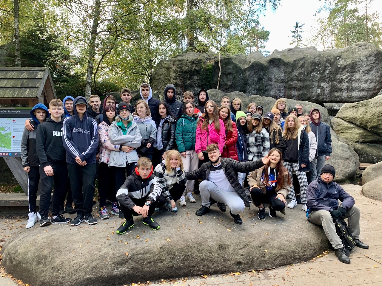 admin 4 lata temu Bez kategorii , Organizacyjne , WycieczkiUczniowie klasy II E oraz II B w dniach 28.09 – 2.10.2021 roku uczestniczyli w wycieczce szkolnej do Wrocławia, gdzie zwiedzili Panoramę Racławicką, Rynek Starego Miasta, płynęli statkiem po Odrze oraz podziwiali wrocławskie zoo. Następny dzień upłynął na wspinaczce po niezwykle malowniczych Górach Stołowych. Duże wrażenie na licealistach wywarła Kaplica Czaszek, Błędne Skały oraz Szczeliniec. Po powrocie z gór uczniowie mieli okazję spacerować po Kudowie Zdroju oraz Wambierzycach. W kolejnym dniu wycieczki młodzież wybrała się pieszo do Jaskini Niedźwiedziej, a po południu do Międzygórza oraz Wodospadu Wilczki. Wieczorem wszyscy spotkali się na integracyjnym grillu. Przed wyjazdem licealiści zwiedzili jeszcze Kopalnię Złota i Średniowieczny Park Techniki w Złotym Stoku. Pobyt na wycieczce dostarczył wielu niezapomnianych wrażeń i wszyscy uczestnicy wrócili bardzo zadowoleni.
