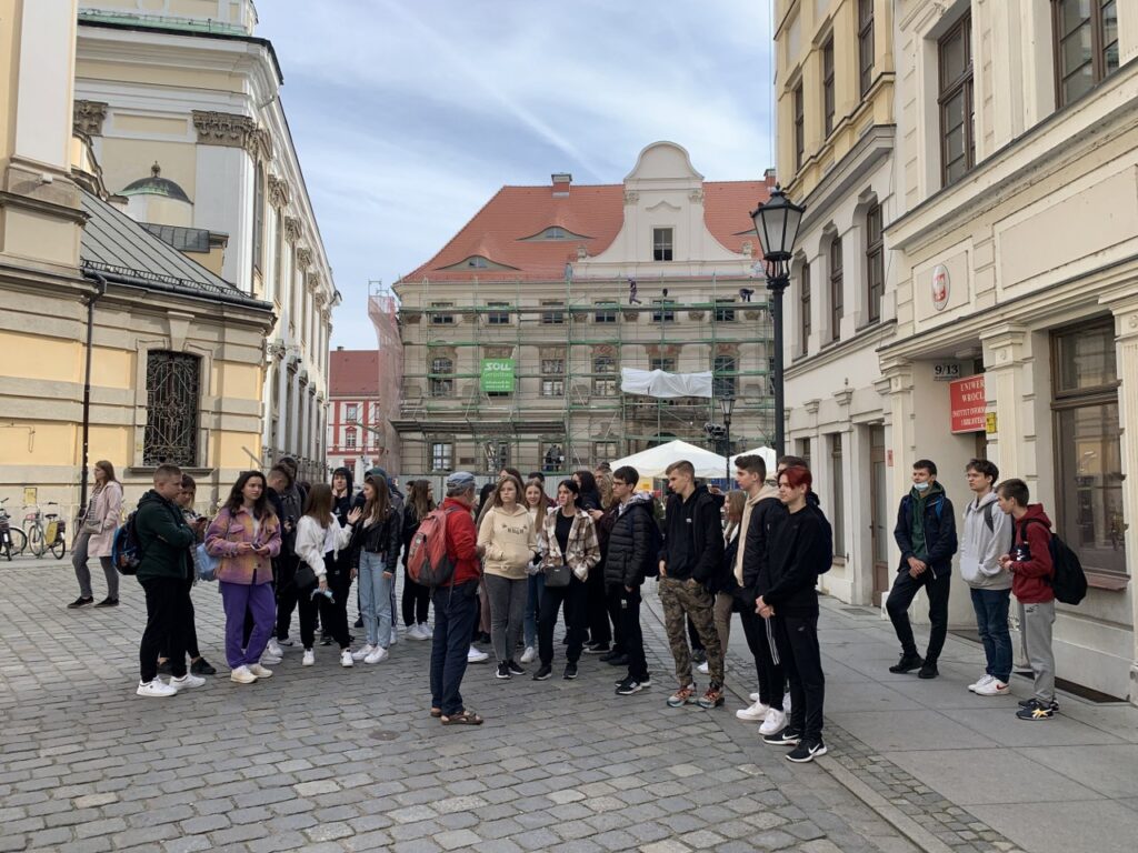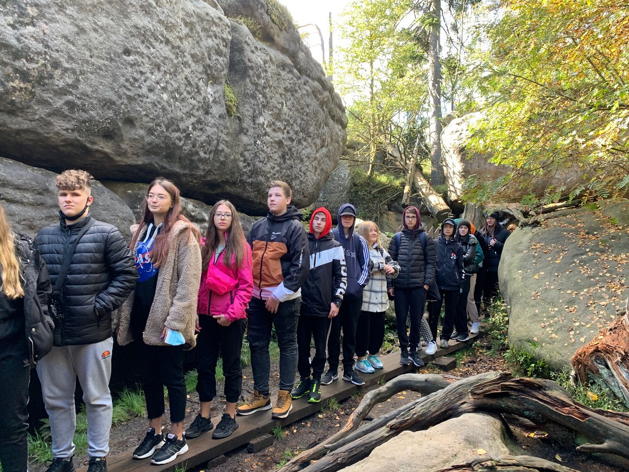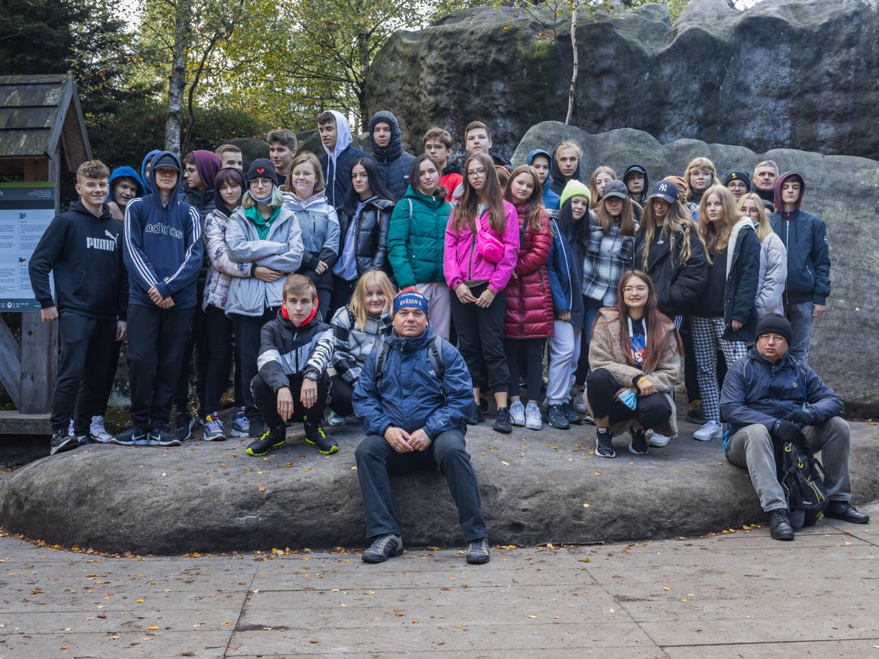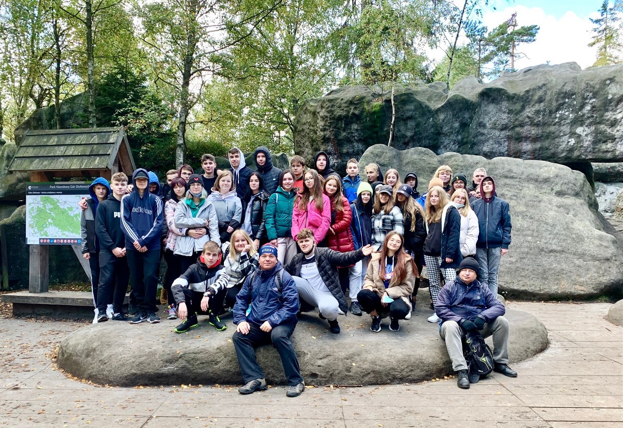 admin 4 lata temu Bez kategorii , Organizacyjne , WycieczkiUczniowie klasy II E oraz II B w dniach 28.09 – 2.10.2021 roku uczestniczyli w wycieczce szkolnej do Wrocławia, gdzie zwiedzili Panoramę Racławicką, Rynek Starego Miasta, płynęli statkiem po Odrze oraz podziwiali wrocławskie zoo. Następny dzień upłynął na wspinaczce po niezwykle malowniczych Górach Stołowych. Duże wrażenie na licealistach wywarła Kaplica Czaszek, Błędne Skały oraz Szczeliniec. Po powrocie z gór uczniowie mieli okazję spacerować po Kudowie Zdroju oraz Wambierzycach. W kolejnym dniu wycieczki młodzież wybrała się pieszo do Jaskini Niedźwiedziej, a po południu do Międzygórza oraz Wodospadu Wilczki. Wieczorem wszyscy spotkali się na integracyjnym grillu. Przed wyjazdem licealiści zwiedzili jeszcze Kopalnię Złota i Średniowieczny Park Techniki w Złotym Stoku. Pobyt na wycieczce dostarczył wielu niezapomnianych wrażeń i wszyscy uczestnicy wrócili bardzo zadowoleni.