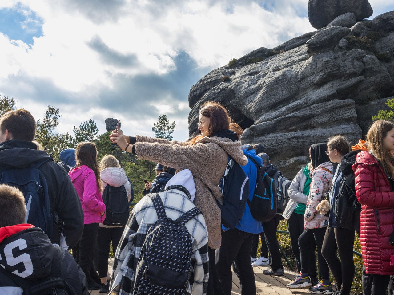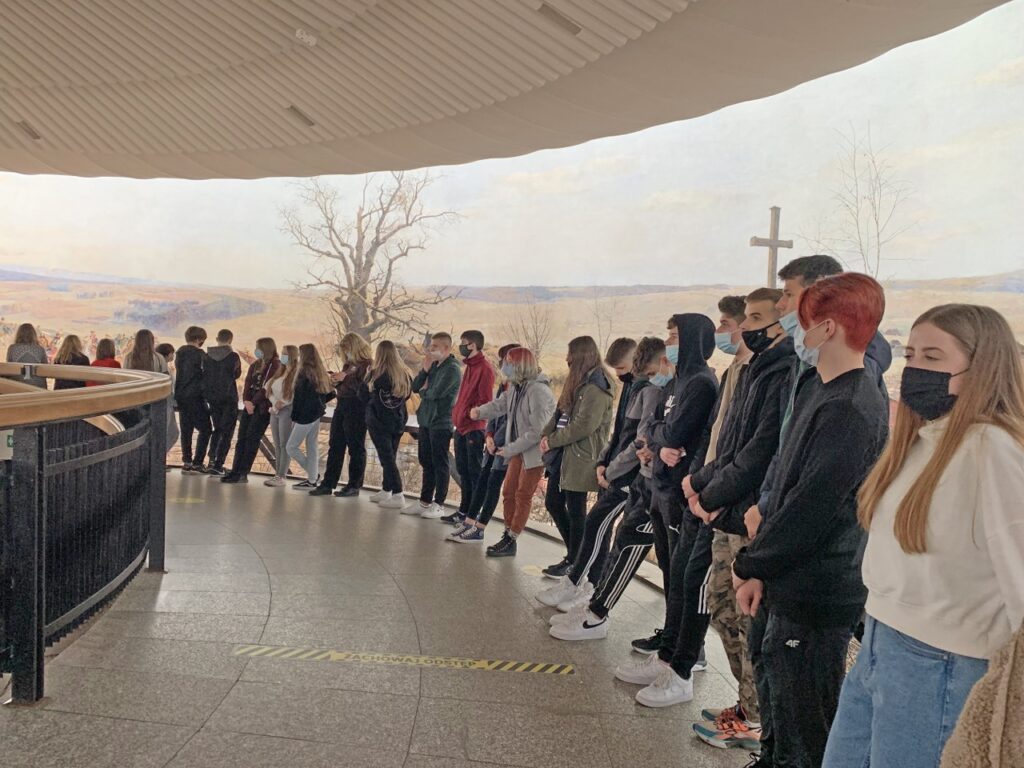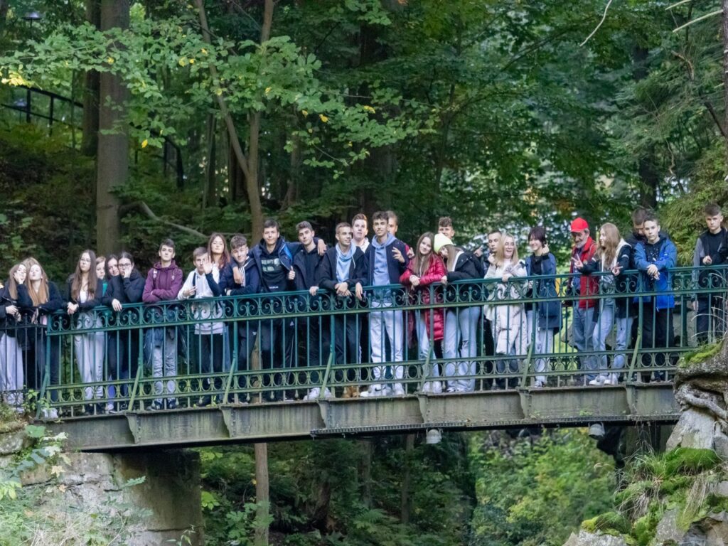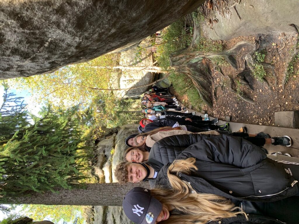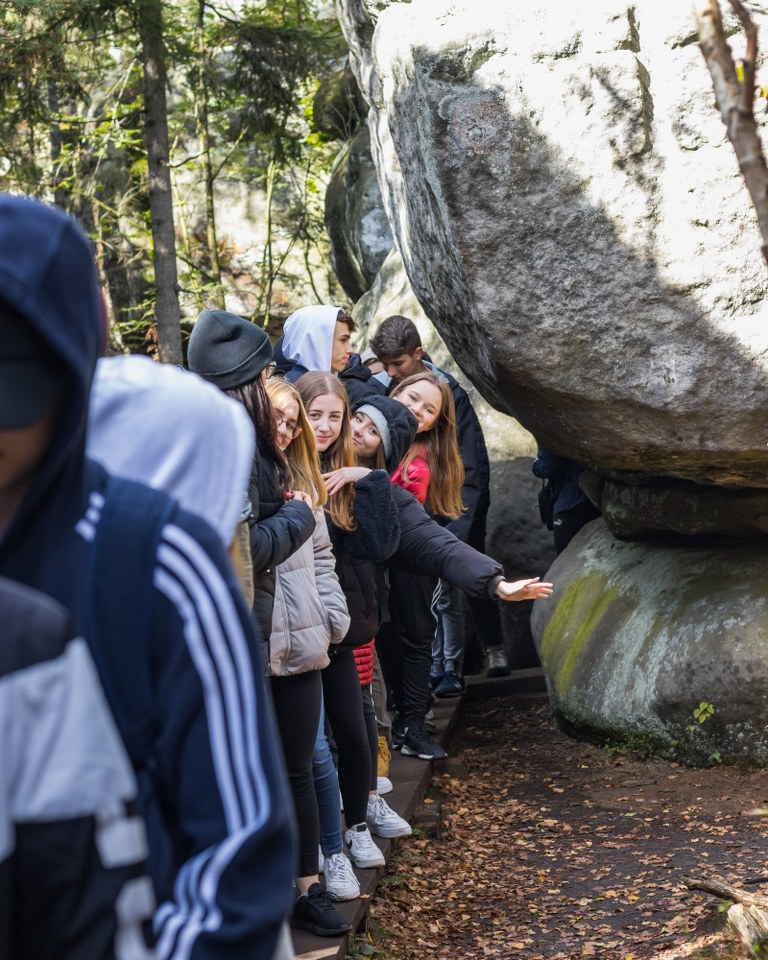 admin 4 lata temu Bez kategorii , Organizacyjne , WycieczkiUczniowie klasy II E oraz II B w dniach 28.09 – 2.10.2021 roku uczestniczyli w wycieczce szkolnej do Wrocławia, gdzie zwiedzili Panoramę Racławicką, Rynek Starego Miasta, płynęli statkiem po Odrze oraz podziwiali wrocławskie zoo. Następny dzień upłynął na wspinaczce po niezwykle malowniczych Górach Stołowych. Duże wrażenie na licealistach wywarła Kaplica Czaszek, Błędne Skały oraz Szczeliniec. Po powrocie z gór uczniowie mieli okazję spacerować po Kudowie Zdroju oraz Wambierzycach. W kolejnym dniu wycieczki młodzież wybrała się pieszo do Jaskini Niedźwiedziej, a po południu do Międzygórza oraz Wodospadu Wilczki. Wieczorem wszyscy spotkali się na integracyjnym grillu. Przed wyjazdem licealiści zwiedzili jeszcze Kopalnię Złota i Średniowieczny Park Techniki w Złotym Stoku. Pobyt na wycieczce dostarczył wielu niezapomnianych wrażeń i wszyscy uczestnicy wrócili bardzo zadowoleni.
