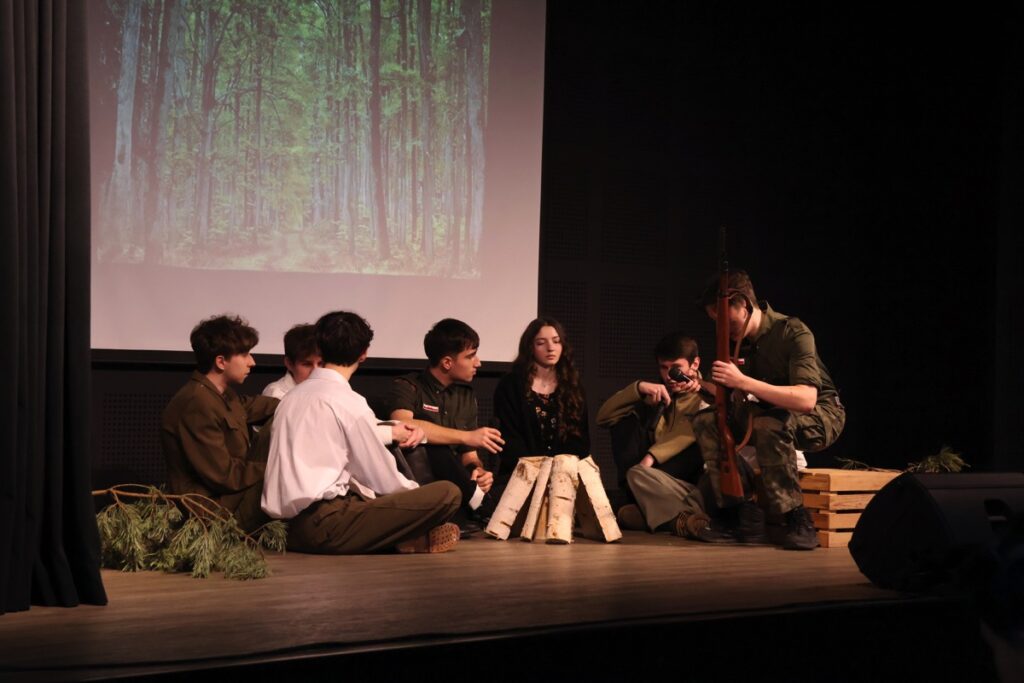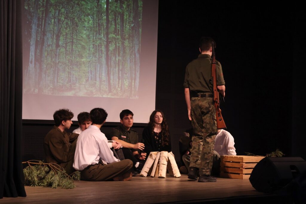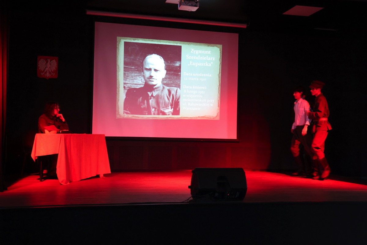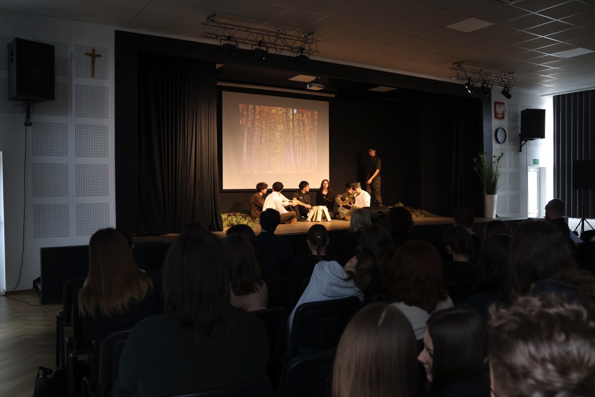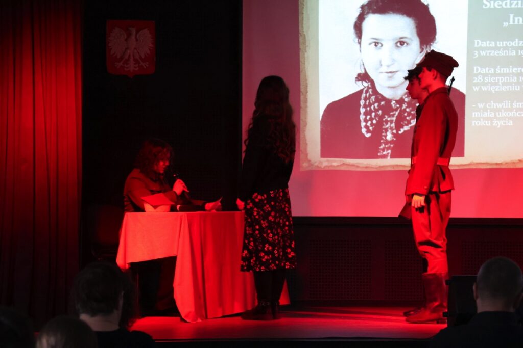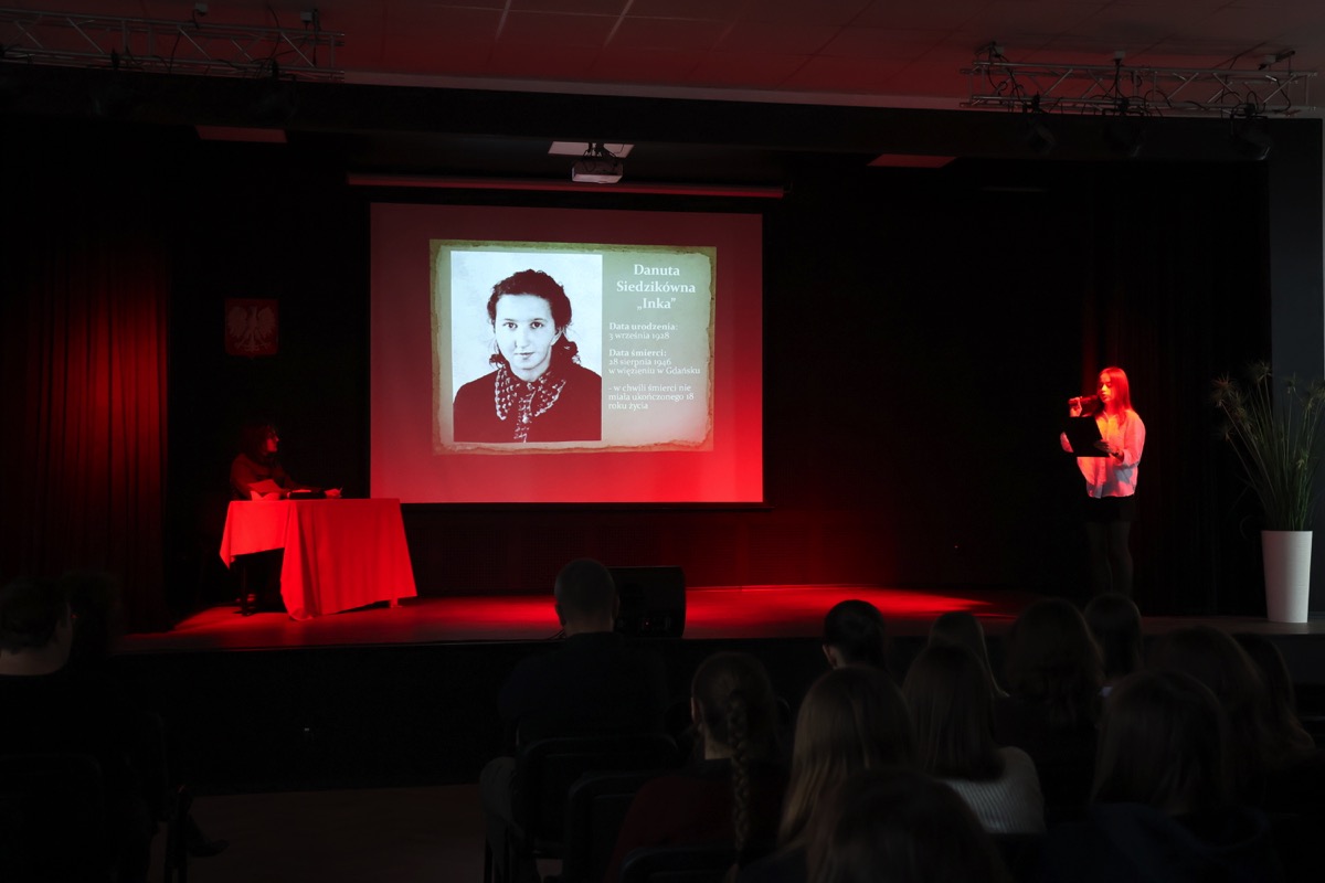 Urodzeni w wolnej Polsce Żołnierze Niezłomni nie tylko marzyli o niepodległej Ojczyźnie, ale mieli także odwagę walczyć z bronią w ręku o jej wolność i niezawisłość. Za swoje męstwo zapłacili najwyższą cenę. Oddając hołd poległym i pomordowanym uczestnikom podziemia antykomunistycznego i niepodległościowego, uczniowie klasy III C, III E i III F przygotowali pod kierunkiem pani Renaty Krzesińskiej i pani Katarzyny Weneckiej okolicznościowe przedstawienie, które zaprezentowali 4 marca 2025 roku całej społeczności szkolnej. Na holu pierwszego piętra uczniowie klasy II D przygotowali także gazetkę upamiętniającą Żołnierzy Niezłomnych.