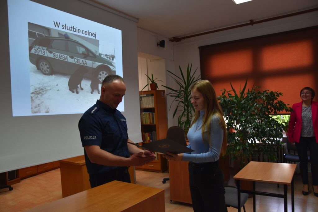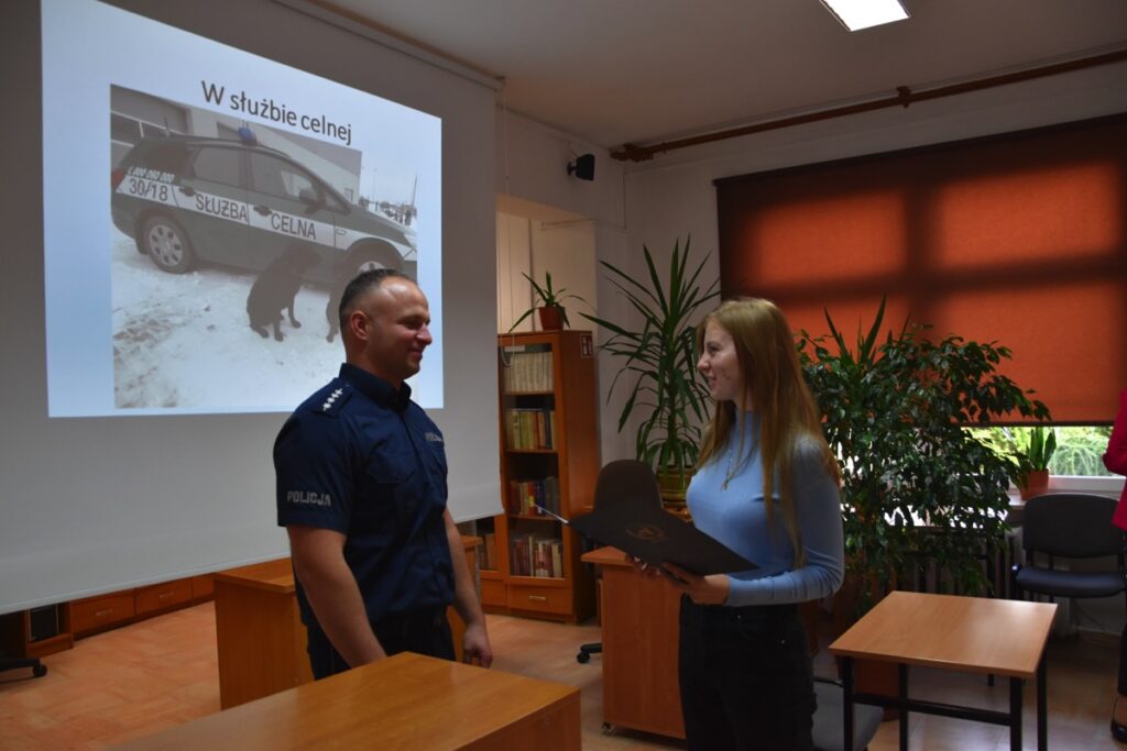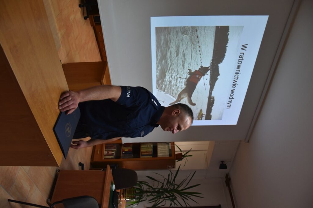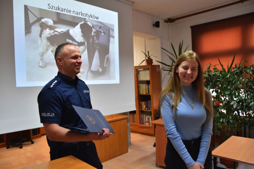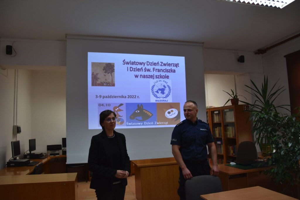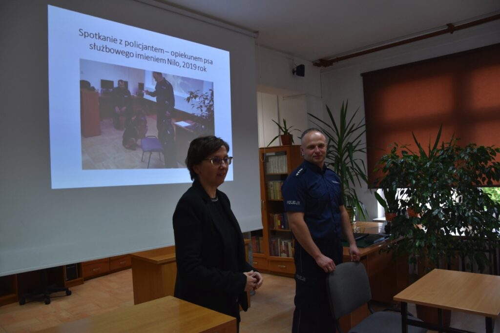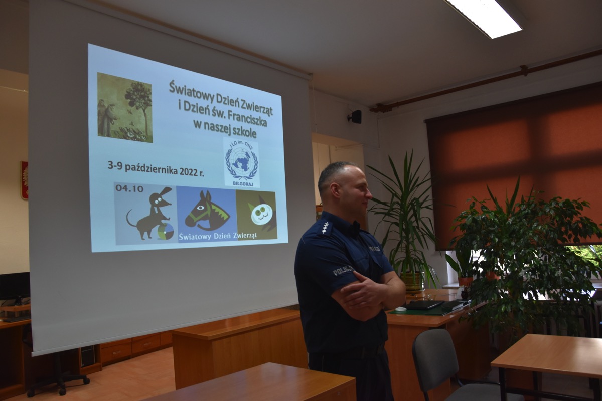 Pod takim hasłem 4 września 2022 roku z okazji Światowego Dnia Zwierząt i Dnia św. Franciszka w czytelni biblioteki szkolnej odbyło się spotkanie z policjantem – opiekunem psów policyjnych.  Zaproszony gość przybliżył młodzieży licealnej zagadnienia związane z wykorzystaniem psów do poszukiwania zaginionych osób i wykrywania przestępstw. Policjant poinformował jak wygląda szkolenie zwierząt, opieka weterynaryjna, a także opowiedział o udziale swoich podopiecznych w ostatnich akcjach poszukiwawczych. Chętnie odpowiadał na pytania zadawane przez młodzież.
