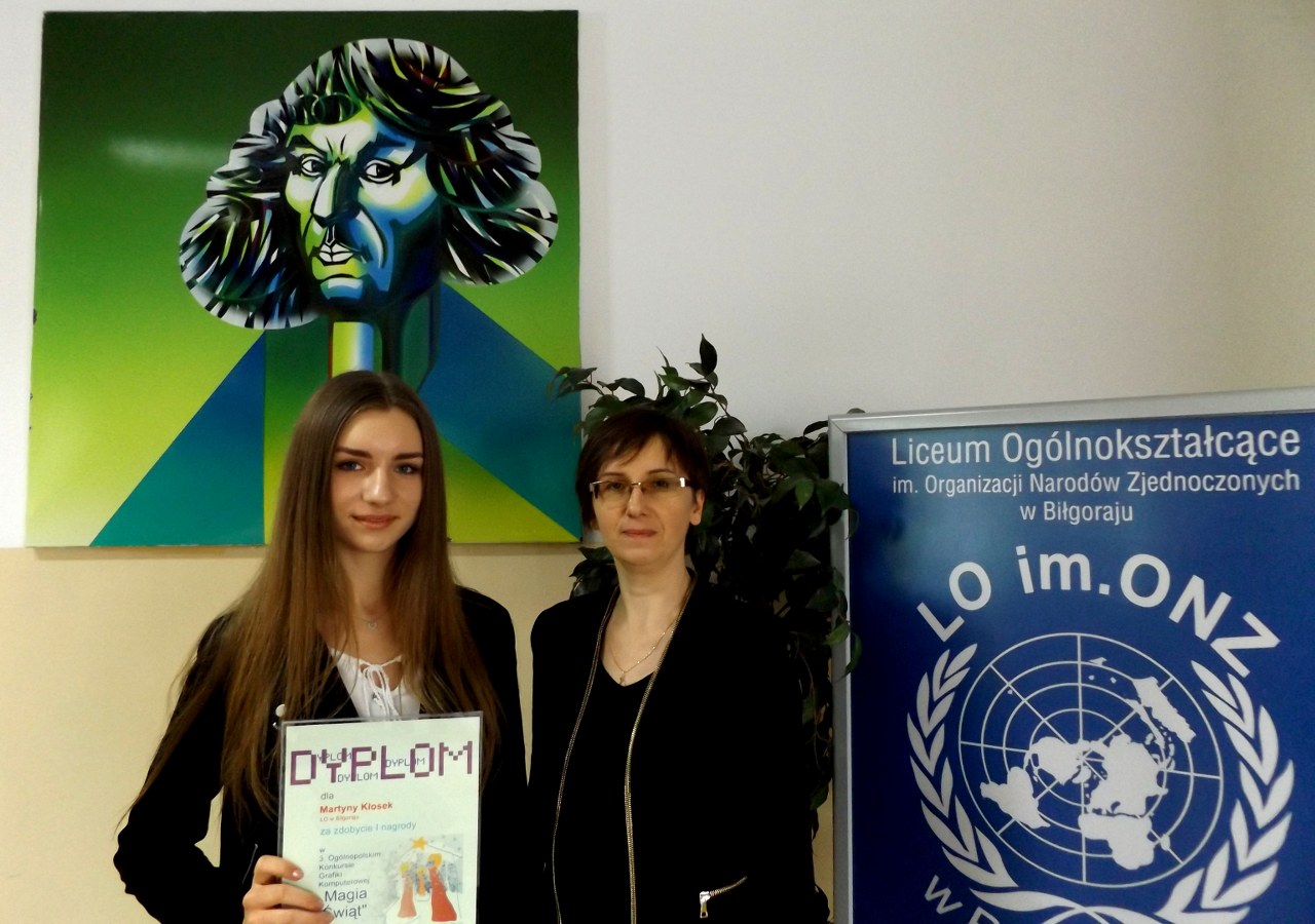 Jury pod przewodnictwem dra hab. Jacka Kornackiego z Akademii Sztuk Pięknych w Gdańsku przyznało Martynie Kłosek I nagrodę w kategorii szkół ponadgimnazjalnych. Na Ogólnopolski Konkurs wpłynęło 426 prac graficznych. Martyna wykonała kartkę w programie do grafiki wektorowej Inkscape.