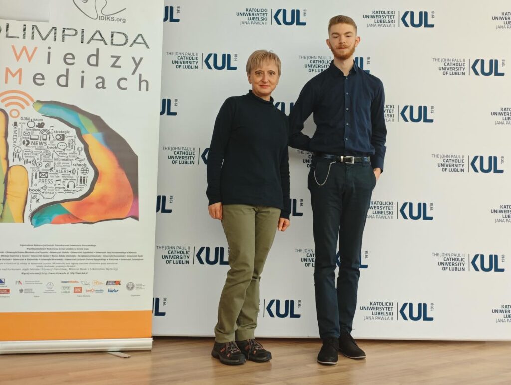 ​Uczniowie naszego liceum od lat z powodzeniem uczestniczą w Olimpiadzie Wiedzy o Mediach, prestiżowym konkursie organizowanym przez Wydział Dziennikarstwa, Informacji i Bibliologii Uniwersytetu Warszawskiego we współpracy z piętnastoma uczelniami z całego kraju.​W tym roku etap wojewódzki XII edycji odbył się 5.12.2025 r. w Instytucie Dziennikarstwa i Zarządzania KUL w Lublinie. Szczególnym sukcesem może pochwalić się Michał Ksiądz z klasy IV A, który pod opieką merytoryczną pani Agnieszki Jamroz zakwalifikował się do ogólnopolskiego finału, zajmując w etapie wojewódzkim drugie miejsce. Ponadto Michał otrzymał wyróżnienie za wyjątkową pracę przesłaną na pierwszy etap tej edycji olimpiady.​Gratulujemy i życzymy dalszych sukcesów!