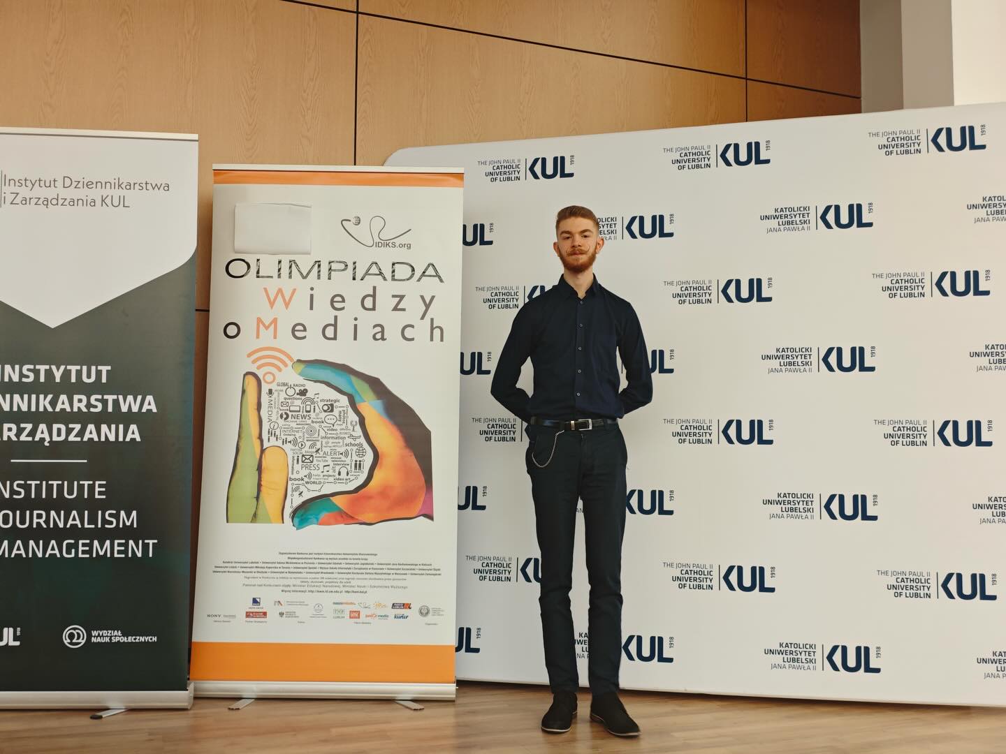 ​Uczniowie naszego liceum od lat z powodzeniem uczestniczą w Olimpiadzie Wiedzy o Mediach, prestiżowym konkursie organizowanym przez Wydział Dziennikarstwa, Informacji i Bibliologii Uniwersytetu Warszawskiego we współpracy z piętnastoma uczelniami z całego kraju.​W tym roku etap wojewódzki XII edycji odbył się 5.12.2025 r. w Instytucie Dziennikarstwa i Zarządzania KUL w Lublinie. Szczególnym sukcesem może pochwalić się Michał Ksiądz z klasy IV A, który pod opieką merytoryczną pani Agnieszki Jamroz zakwalifikował się do ogólnopolskiego finału, zajmując w etapie wojewódzkim drugie miejsce. Ponadto Michał otrzymał wyróżnienie za wyjątkową pracę przesłaną na pierwszy etap tej edycji olimpiady.​Gratulujemy i życzymy dalszych sukcesów!