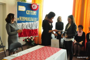 Nela Fusiarz  (kl. I D) zajęła pierwsze, a Martyna Koman (kl. I D) trzecie miejsce w Powiatowym Konkursie  Pięknego Czytania, który odbył się w  6 listopada 2018 roku w ZSBiO w Biłgoraju. Konkurs przebiegał pod hasłem „Czytamy dla Niepodległej”, a  uczestnicy prezentowali wybrane przez siebie fragmenty wybitnego dzieła Marii Dąbrowskiej „Noce i dnie”.