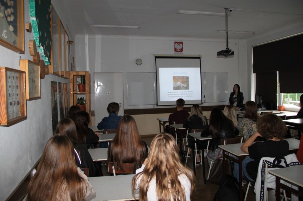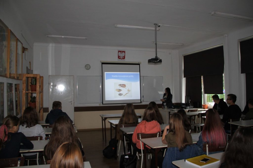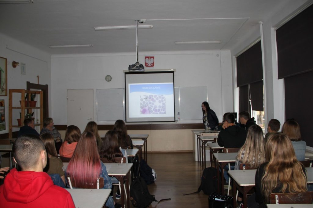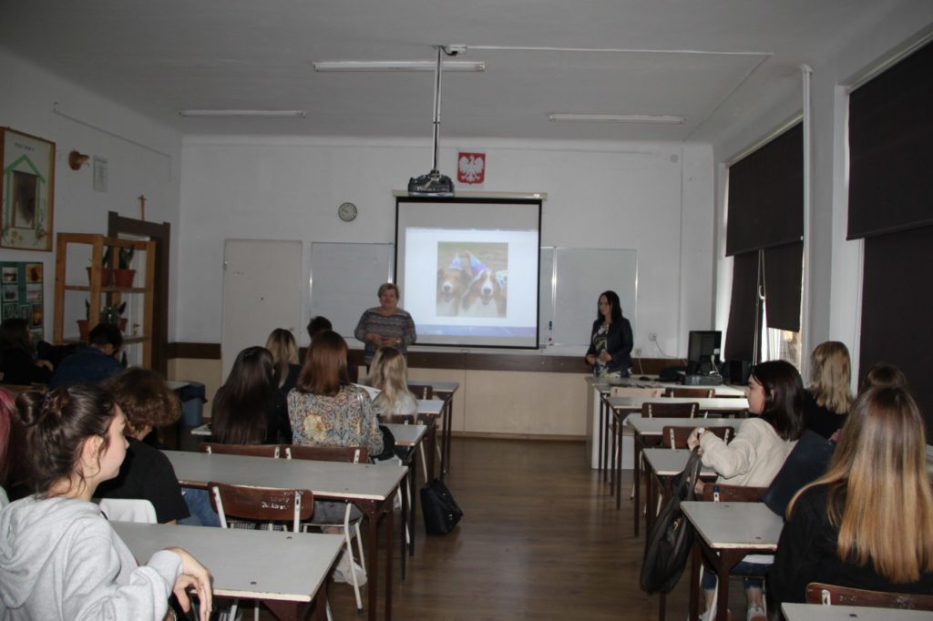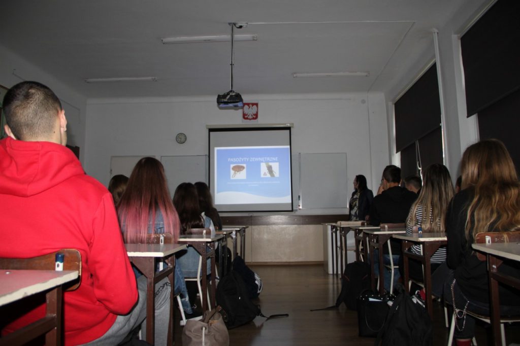 Uczniowie klas biologicznych uczestniczyli w spotkaniu z weterynarzem – panią Sylwią Buszkowską-Znak, która zapoznała młodzież z zagadnieniami z zakresu higieny i pielęgnacji czworonogów, jak również z diagnostyką i leczeniem najczęściej występujących u nich chorób.
