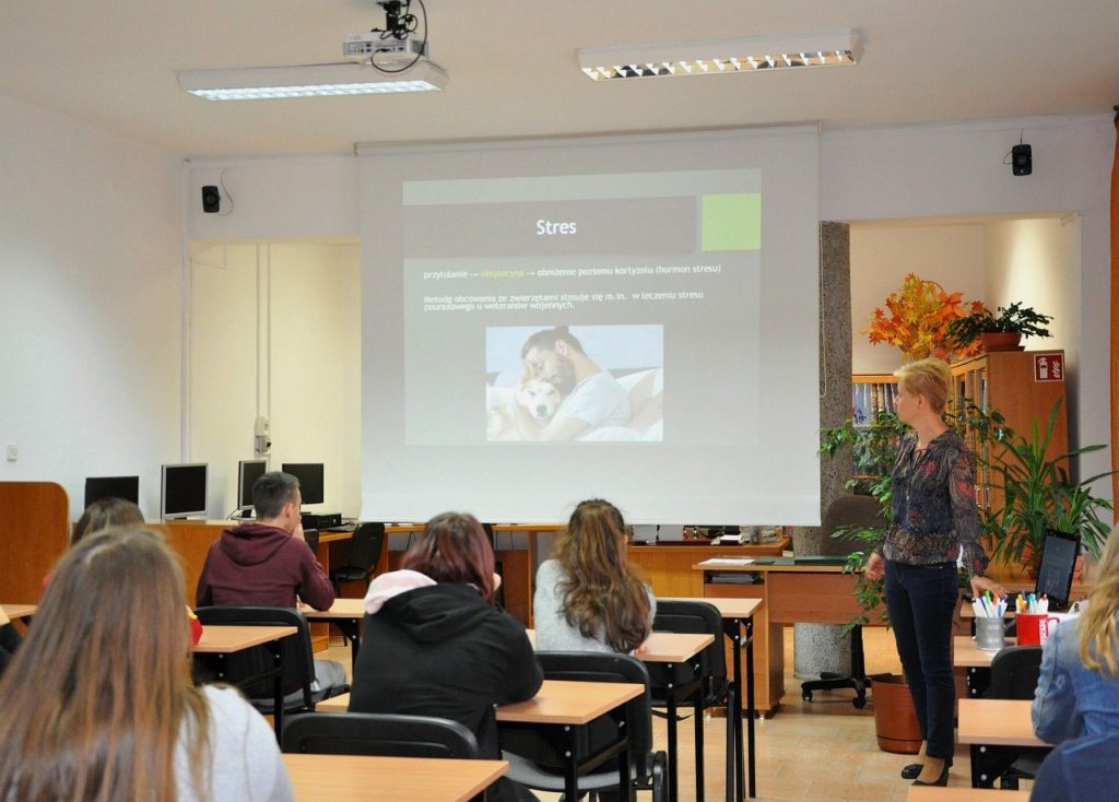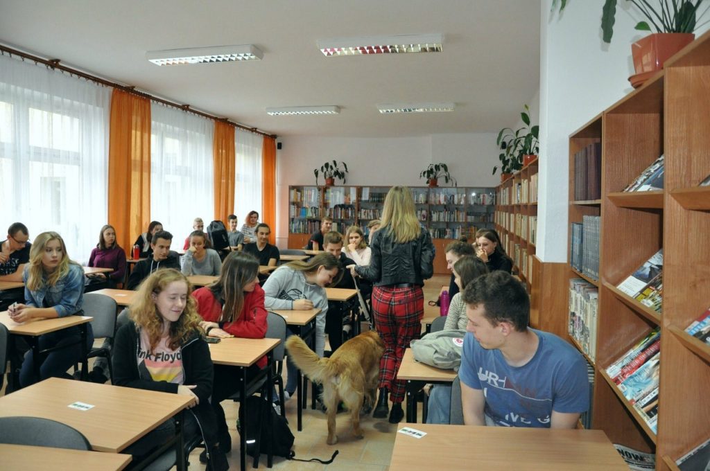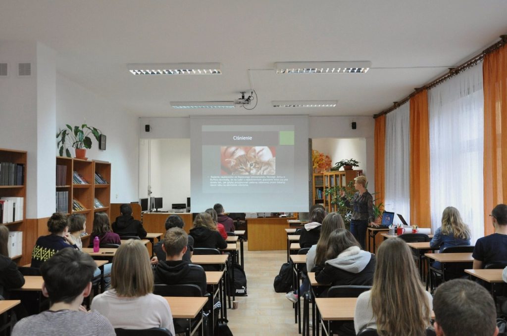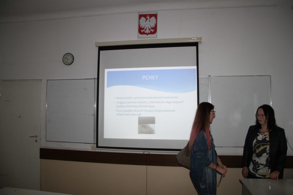 Uczniowie klas biologicznych uczestniczyli w spotkaniu z weterynarzem – panią Sylwią Buszkowską-Znak, która zapoznała młodzież z zagadnieniami z zakresu higieny i pielęgnacji czworonogów, jak również z diagnostyką i leczeniem najczęściej występujących u nich chorób.