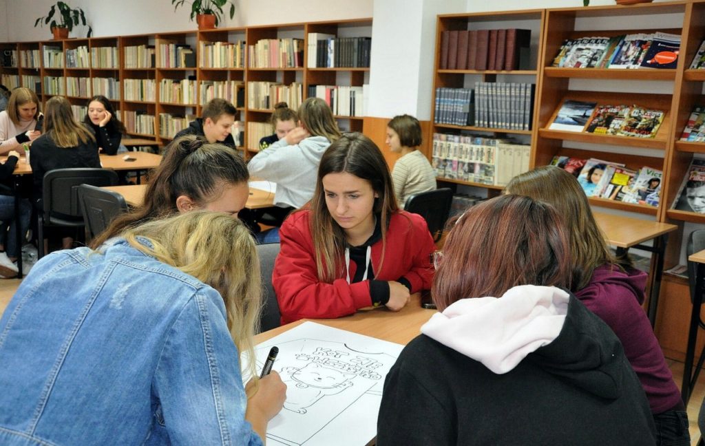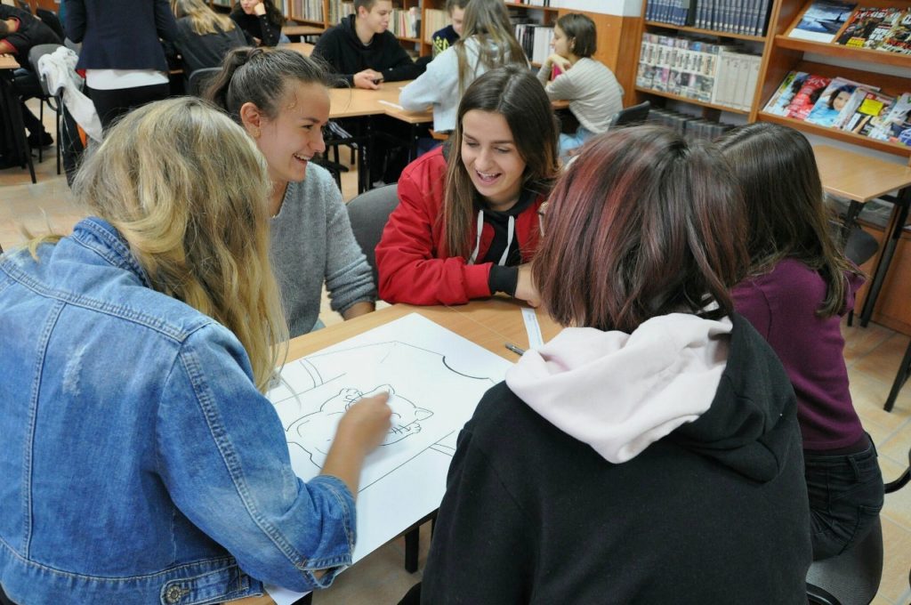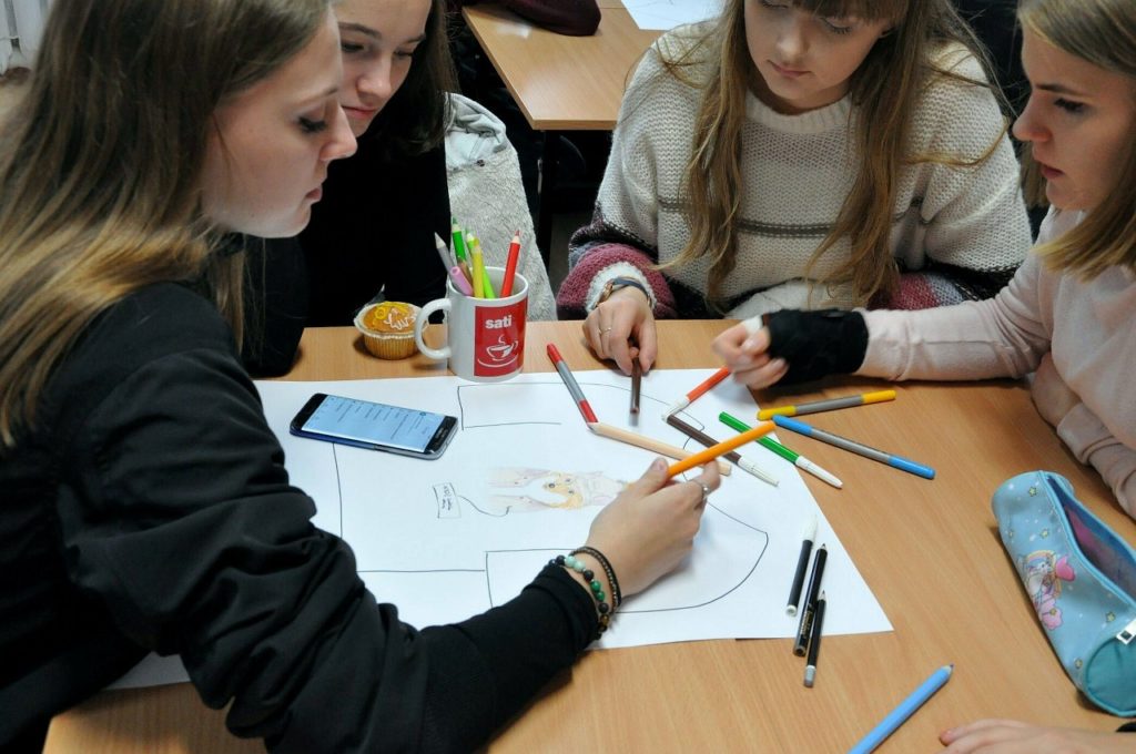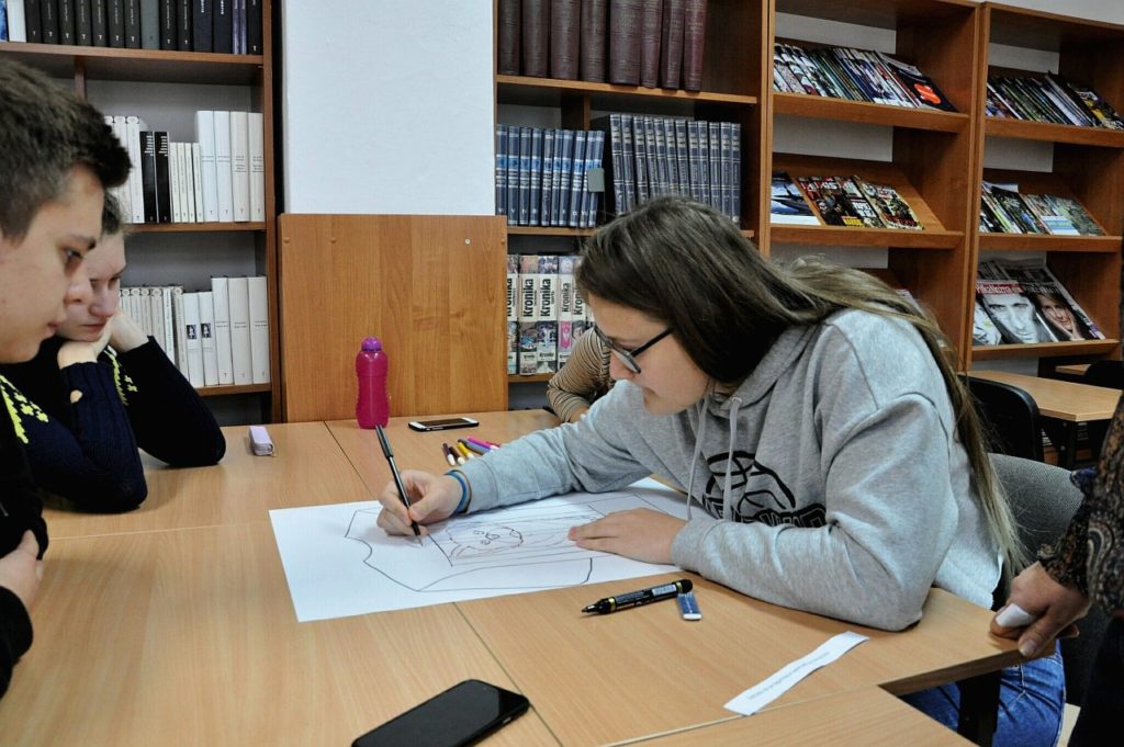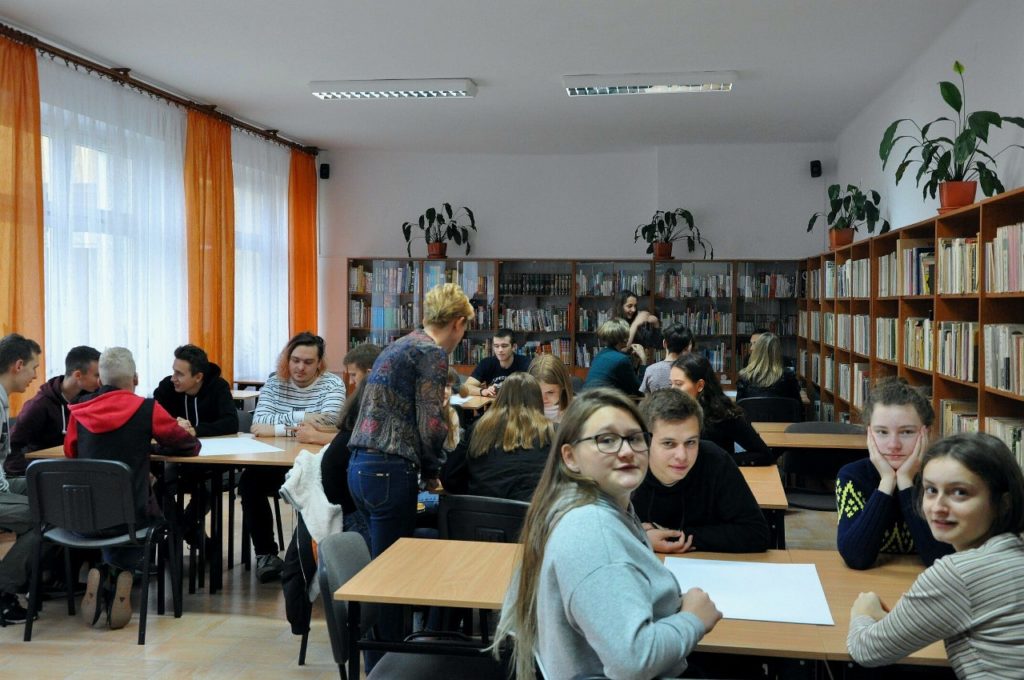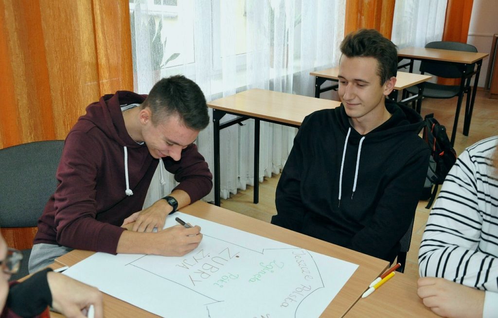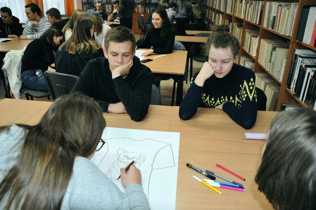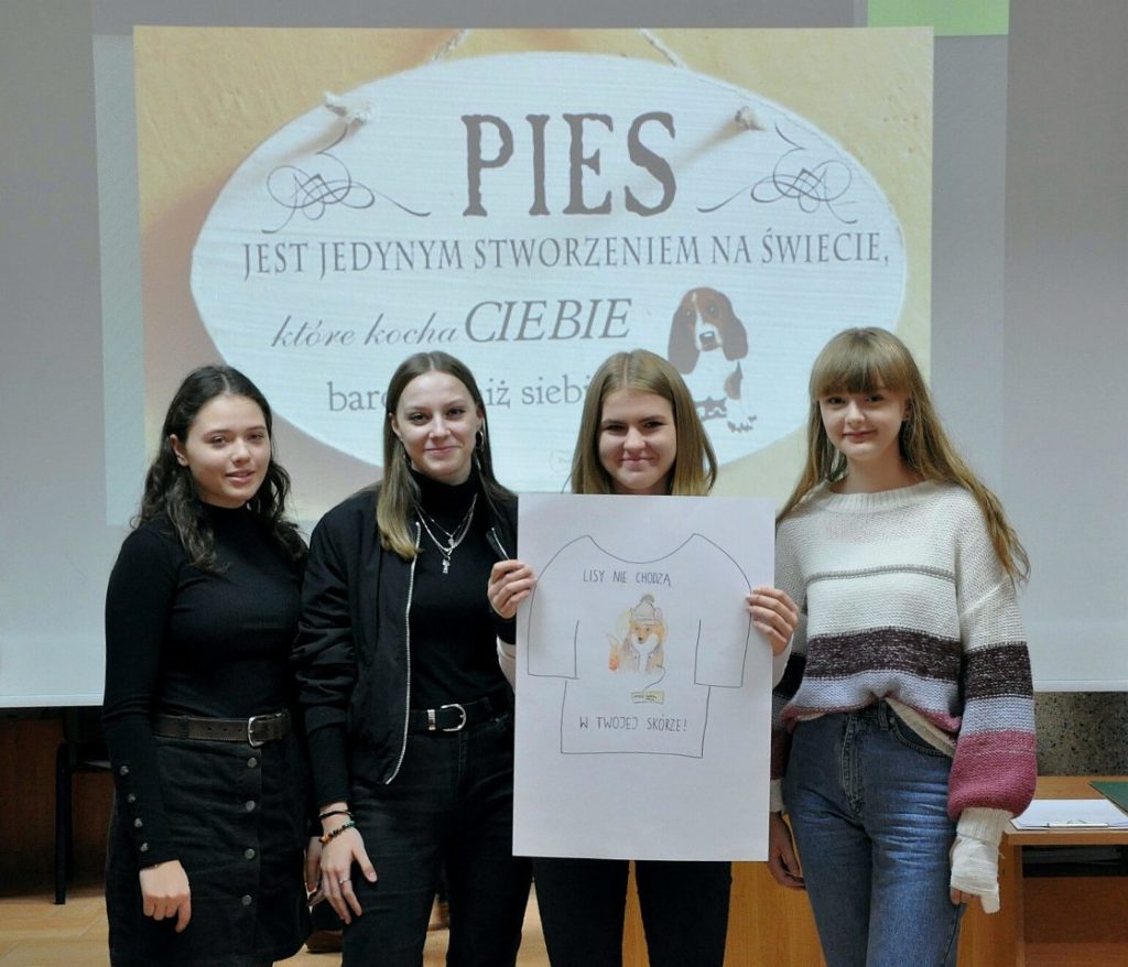 Dla uczniów z klas graficznych ciekawe warsztaty prowadziła pani psycholog Monika Szczerba. Podczas zajęć licealiści rozmawiali o wpływie zwierząt na psychikę człowieka oraz projektowali koszulki promujące opiekę nad zwierzętami.
