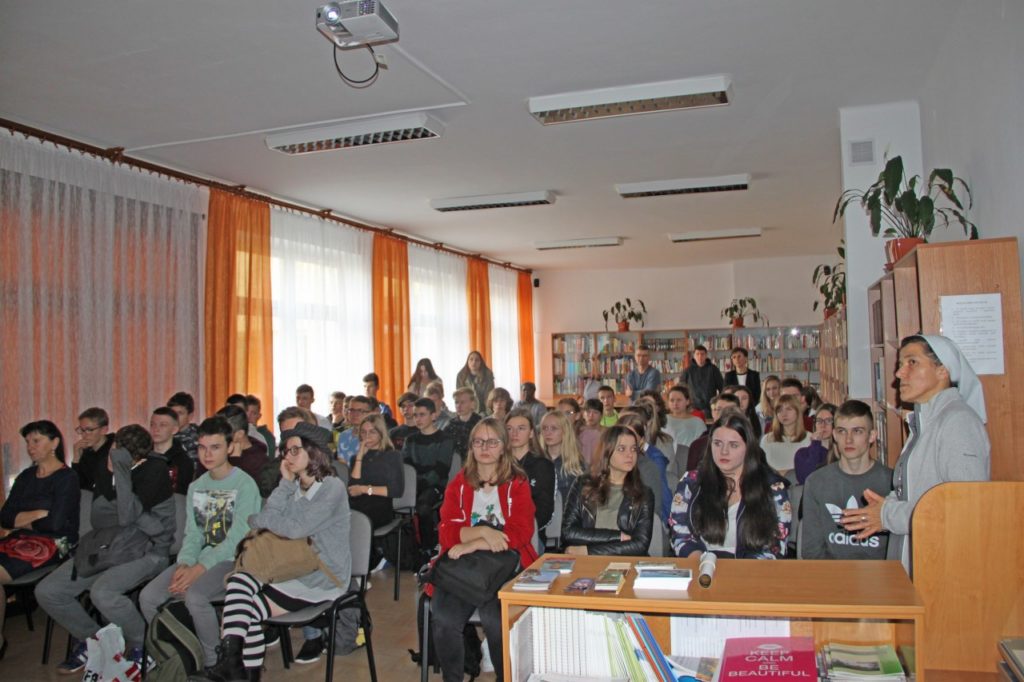 Na lekcjach religii o życiu i działalności św. Franciszka opowiadały siostry z Zakonu Franciszkanek Misjonarek Maryi. Siostry z Łabuń, wykorzystując prezentację multimedialną, rozmawiały z młodzieżą o swojej działalności misyjnej na rzecz potrzebujących na całym świecie. Przestrzegały młodych ludzi przed zagrożeniami współczesnej cywilizacji, takimi jak: handel ludźmi, prostytucja czy niewolnictwo.