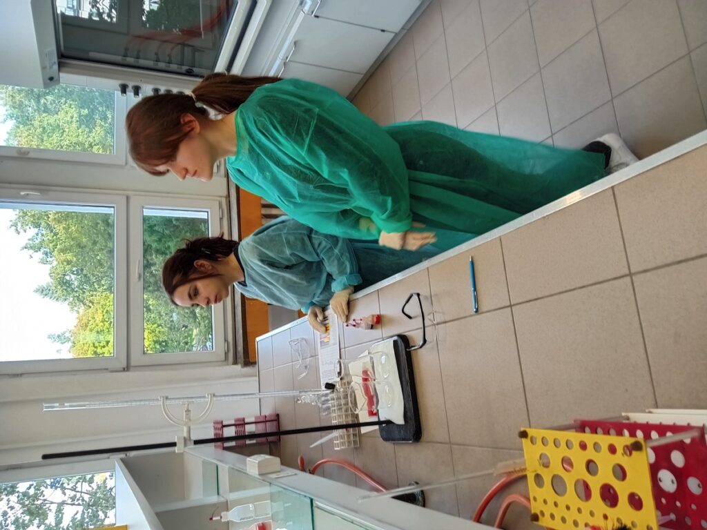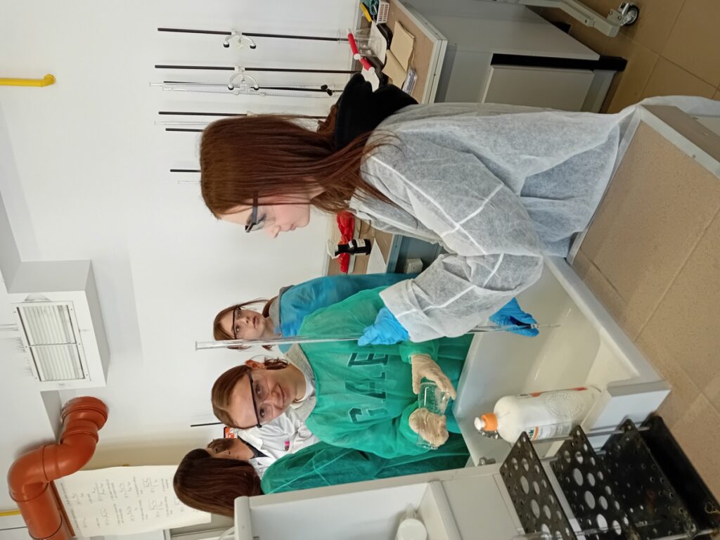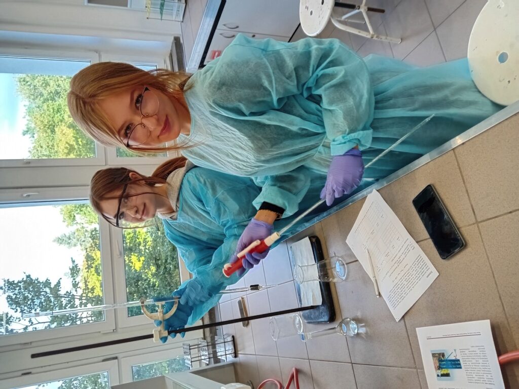 admin 2 lata temu Organizacyjne , Wycieczki6 października 2023 r. uczniowie klasy II H odwiedzili pracownię Katedry Chemii Analitycznej w Instytucie Nauk Chemicznych Wydziału Chemii UMCS w Lublinie. Młodzież wzięła udział w zajęciach laboratoryjnych w ramach projektu Akademia Miareczkowania. Szereg doświadczeń wraz z ich wnikliwą analizą, pod okiem wykwalifikowanych nauczycieli akademickich, wprowadził uczniów w technikę pracy w laboratorium chemicznym oraz pozwolił lepiej zrozumieć zjawiska i procesy chemiczne.